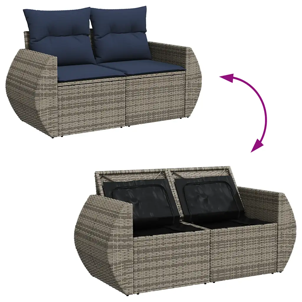 Kui soovite luua terrassile või aianurka mugava istumisala, mis pakub ühtaegu nii lõõgastusruumi kui ka lisapanipaika, on see 11-osaline hall PE-rotangist aiadiivani komplekt praktiline valik. Modulaarsetest elementidest saab kujundada erinevaid paigutusi, tumesinised padjad lisavad värvi ning veekindlad hoiukotid aitavad hoida õuemööbli korras ja kaitstuna.