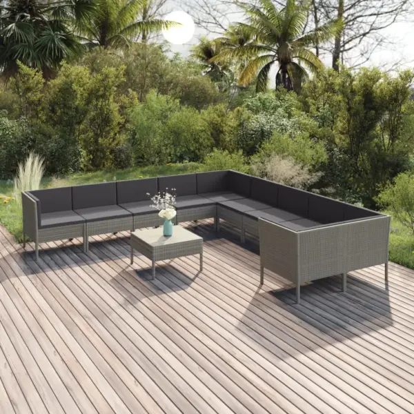 See 11-osaline aiamööbli komplekt aitab luua aeda või terrassile mugava puhkenurga pere ja sõpradega ajaveetmiseks. Hallist ilmastikukindlast PE-rotangist moodulid ja antratsiitvärvi pehmed padjad loovad neutraalse ning kaasaegse ilme, mida on lihtne eri õuestilistega sobitada. Tänu kergele ja modulaarsele disainile saab elemente vastavalt vajadusele ümber paigutada ja istumisala suurust muuta.
