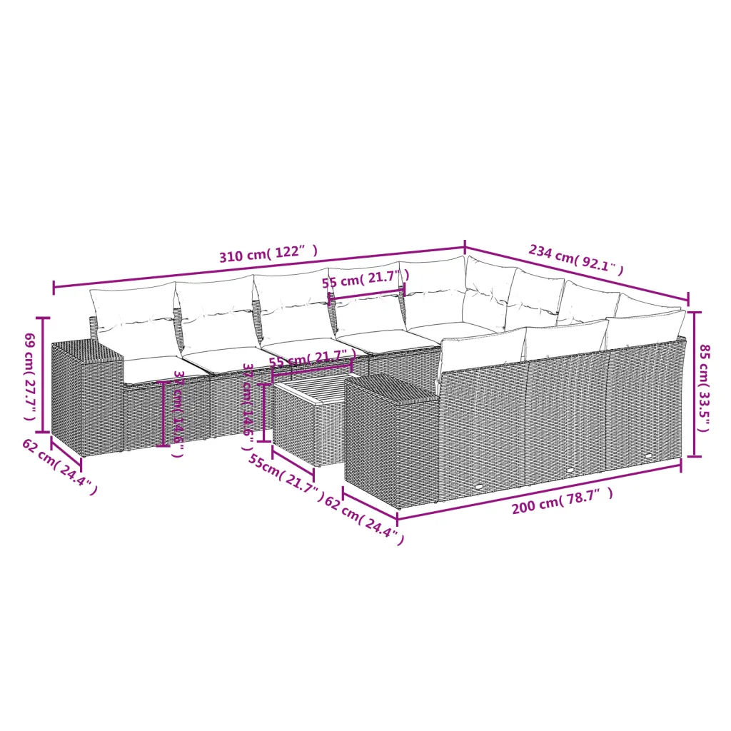 See 11-osaline polürotangist aiadiivani komplekt loob hoovi, aeda või terrassile mugava istumisala, kus on hea pere ja sõpradega aega veeta. Modulaarne lahendus võimaldab elemente vastavalt vajadusele ümber paigutada ning integreeritud panipaigad hoiavad patjad ja muud tarvikud kuivana ja korras.