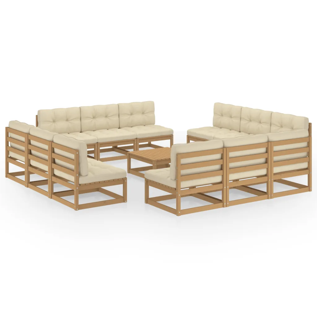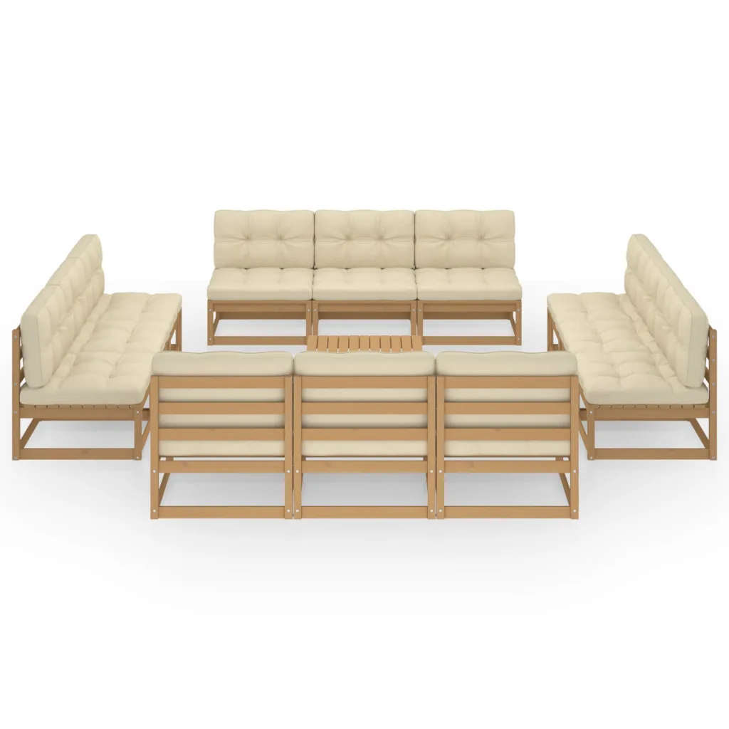 See 13-osaline aiamööbli komplekt loob terrassile või aeda meeldiva istumisala, kus puhata, ilma nautida ja külalisi võõrustada. Vastupidav männipuidust raam koos paksude kreemjate patjadega tagab mugava istumise nii igapäevaseks kasutuseks kui ka pikemateks koosviibimisteks. Tänu moodulitele saab komplekti paigutada vastavalt oma ruumile ja vajadustele, luues paindliku lahenduse igasse õueala.