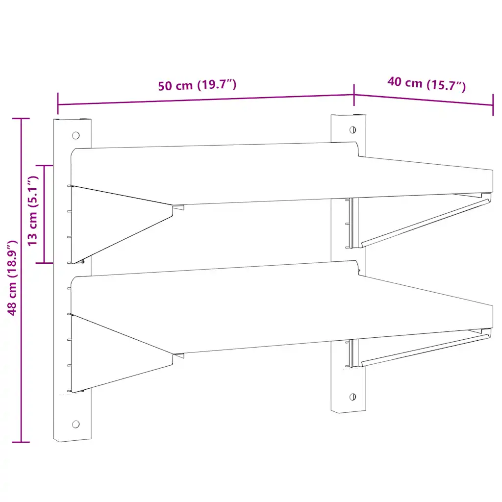 - Kaks roostevabast terasest riiuliplaati mõõtudega 50 x 40 cm
