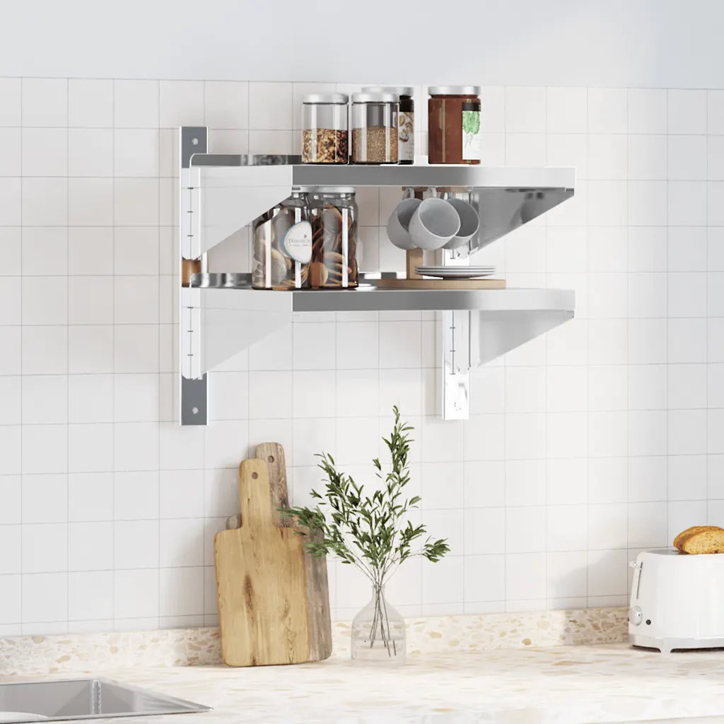 See 2-korruseline seinariiul aitab hoida köögi, kodu või tööruumi pinnad vabana, pakkudes lisahoiust seinal. Harjatud viimistlusega roostevabast terasest konstruktsioon on vastupidav ja korrosioonikindel, sobides hästi nii koju kui ka professionaalsesse kasutusse.