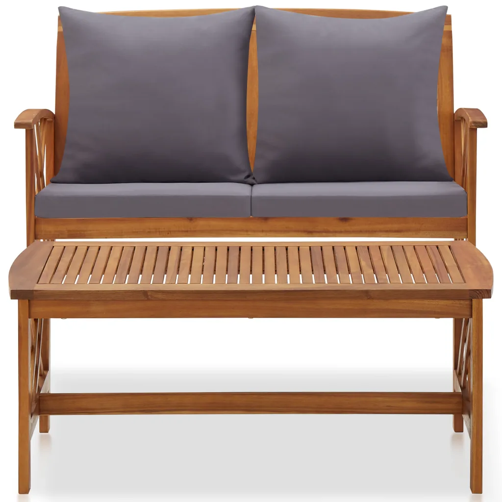 See 2-osaline akaatsiapuidust aiadiivanikomplekt loob aias, terrassil või rõdul hubase istumisnurga lõõgastumiseks. Komplekt koosneb aiapingist ja kohvilauast, mille naturaalne õliviimistlus toob esile puidu soojad toonid. Tumehallid istme- ja seljatoepadjad lisavad istumismugavust ja loovad ajatu, kergesti sobituva ilme.