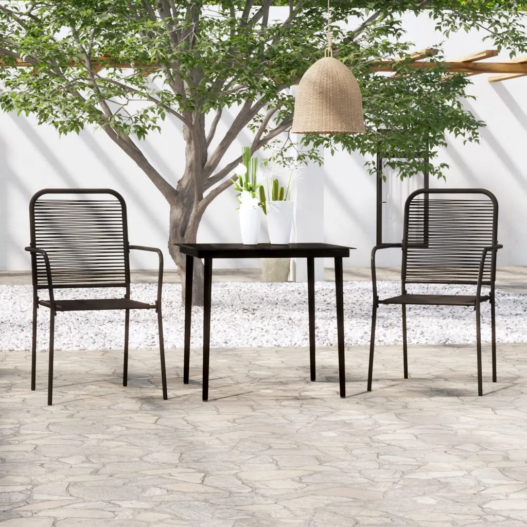 Miks valida 3-osaline aiamööbli komplekt klaaslaua ja nöörist istmetega, must, laud 80 x 80 cm