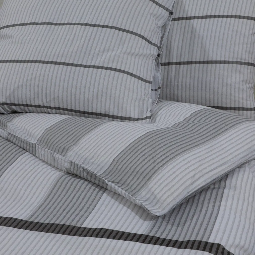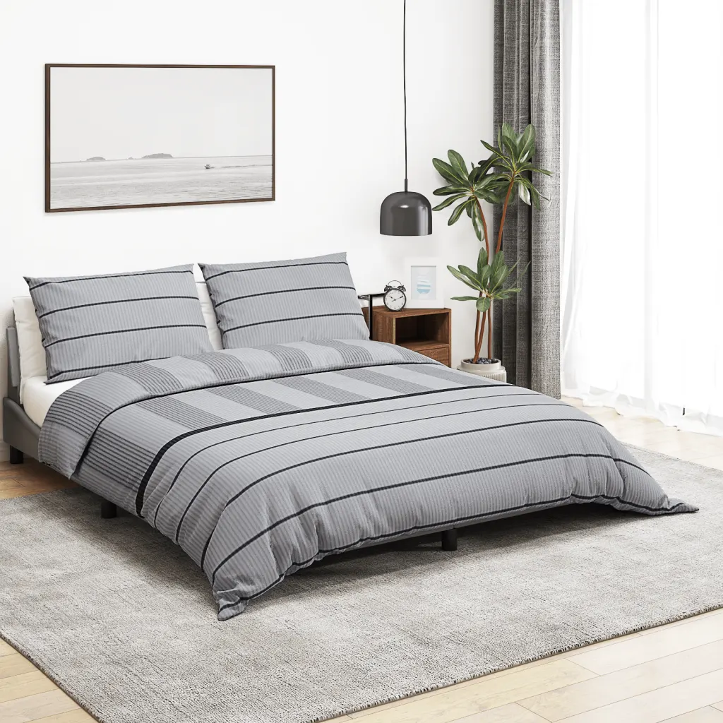 See 3-osaline hall voodipesukomplekt ühendab ajatu välimuse, mugava 100% puuvillase materjali ja praktilise hoolduse. Kortsumiskindel ja vastupidav kangas, peidetud nööpidega sulgemine ning OEKO-TEX Standard 100 sertifikaat teevad sellest usaldusväärse valiku neile, kes hindavad nii mugavust kui ka kvaliteeti.