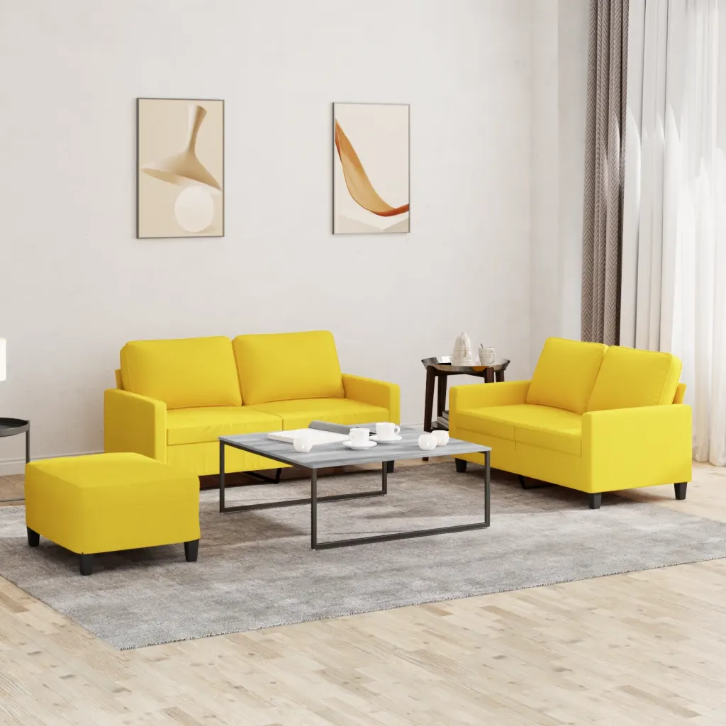 Helekollane 3-osaline diivanikomplekt mugava ja valgusküllase elutoa jaoks