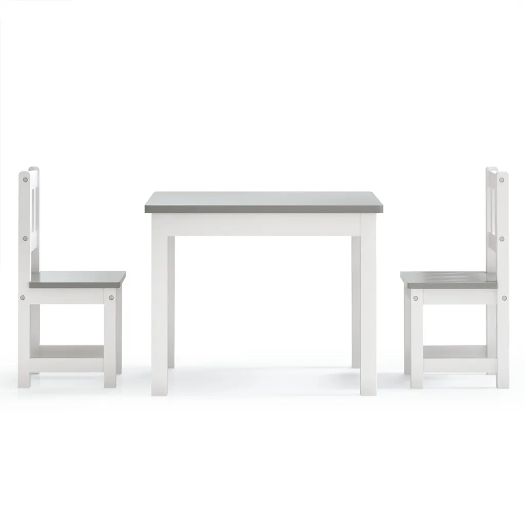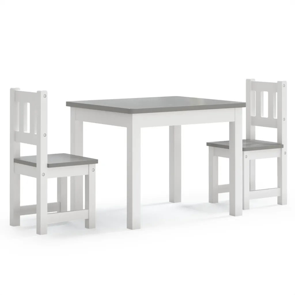 See kompaktne lastemööbli komplekt pakub lastele mugavat ja nende mõõtudele vastavat töö- ja mängupinda. Vastupidav MDF-konstruktsioon ning neutraalne valge-hall värvilahendus sobivad erinevatesse interjööridesse, võimaldades luua lapsele oma nurga õppimiseks ja mängimiseks.