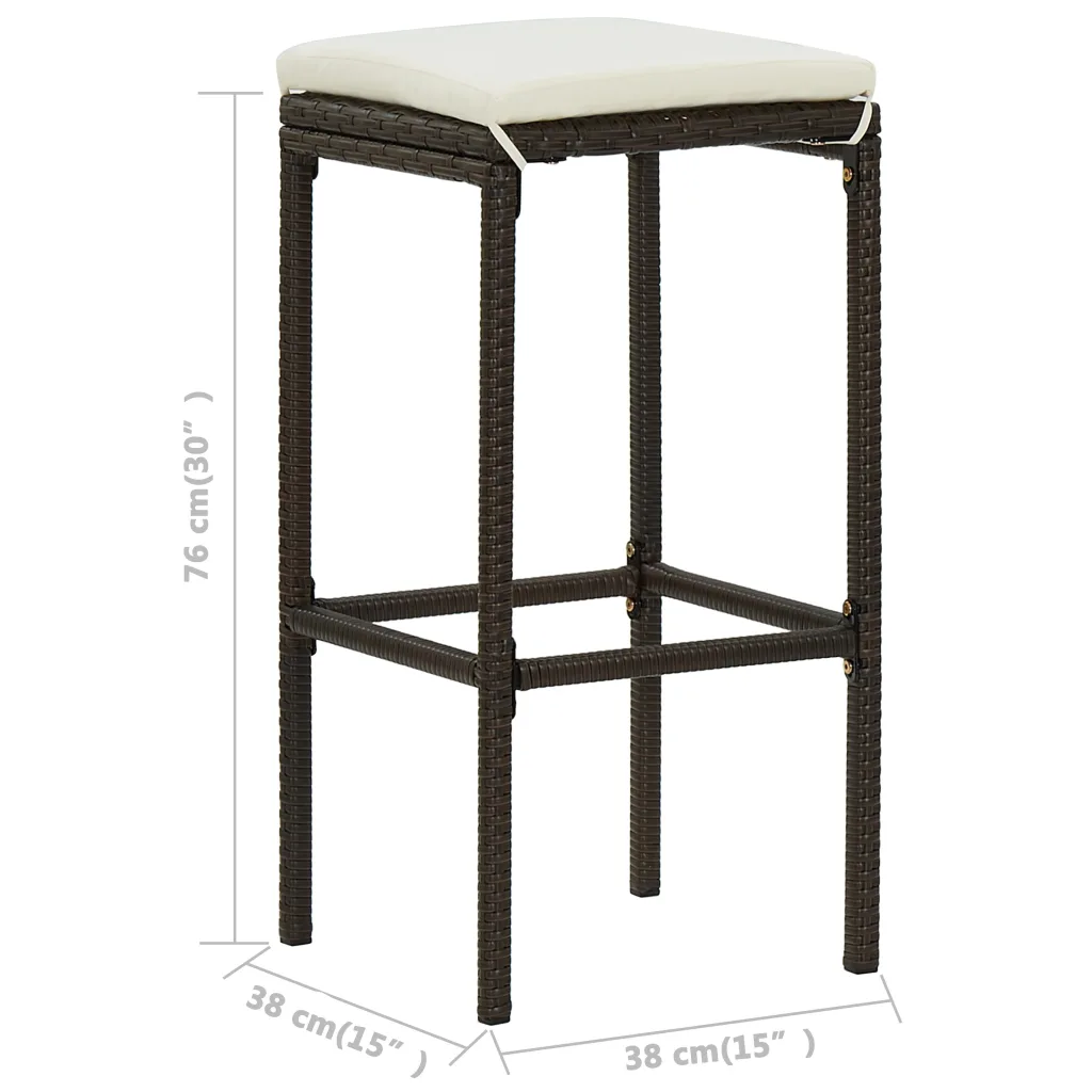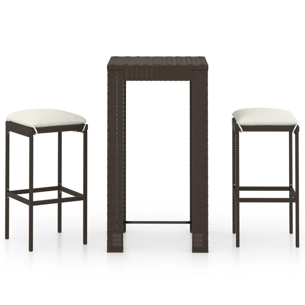See 3-osaline aiabaari komplekt loob stiilse ja mugava koha pere või sõpradega aja veetmiseks aias, terrassil või rõdul. Komplekt koosneb ruudukujulisest baarilauast ja kahest baaripukist istmepatjadega, mille pruun polürotangist viimistlus sobitub hõlpsalt erinevate õuesisustuse lahendustega.