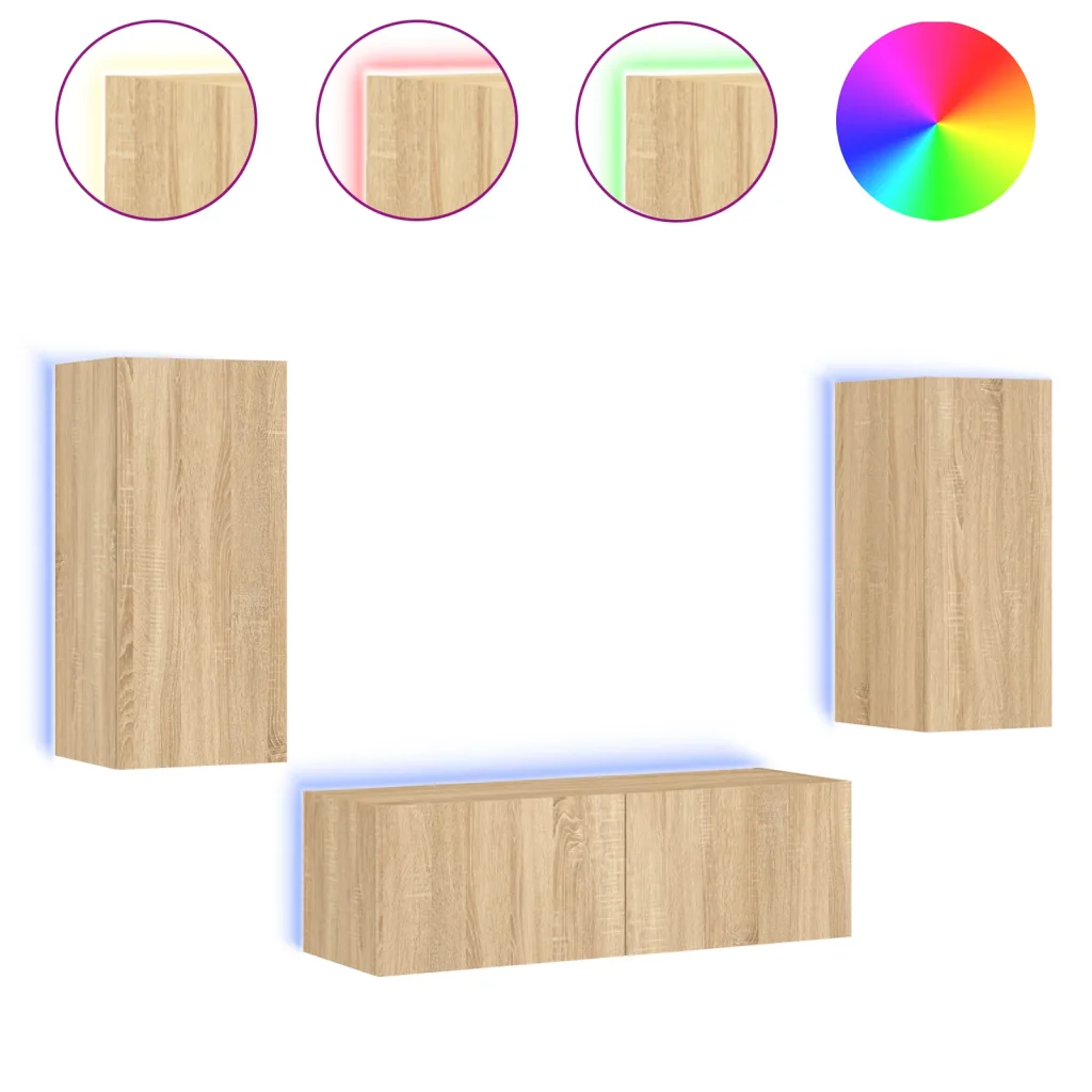See 3-osaline teleri seinakappide komplekt aitab maksimeerida hoiuruumi teleri ümber ja hoida põrandapinna vabana. Seinale kinnitatav disain koos RGB LED-valgustusega loob kaasaegse ilme ning Sonoma tamme toon sobitub hõlpsasti erinevate interjööristiilidega.