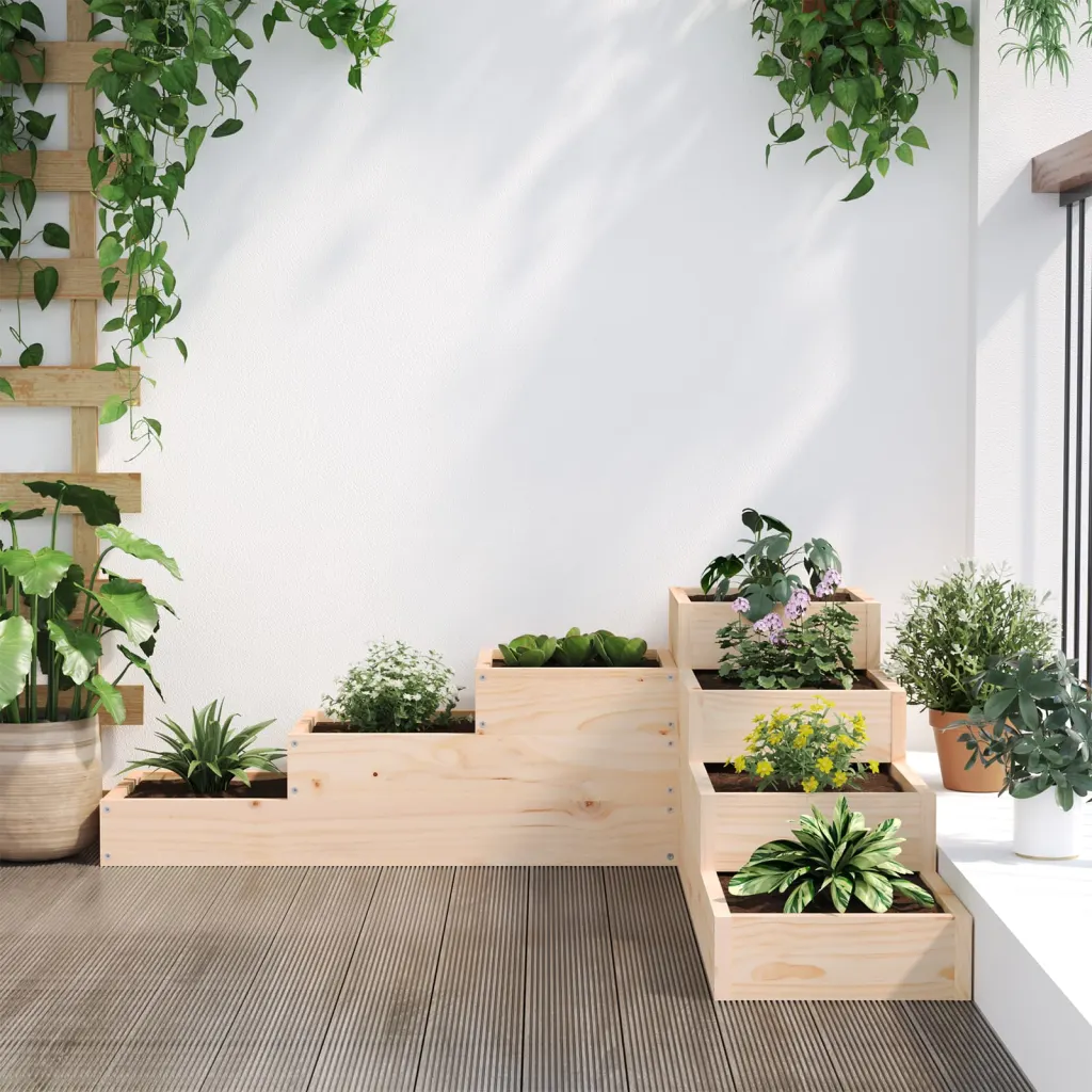 Kui soovid luua ruumisäästliku ja selgelt struktureeritud istutusala aianurka, rõdule või terrassile, on see täismännipuidust lillekast praktiline lahendus. Mitmetasandiline ja L-kujuline disain aitab paremini korraldada erinevaid taimi, põhjata ehitus soodustab head drenaaži ning naturaalne puit sulandub harmooniliselt igasse õueruumi.