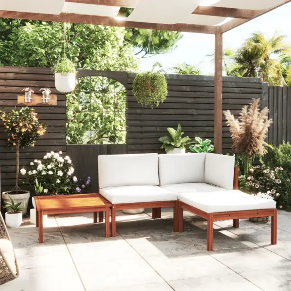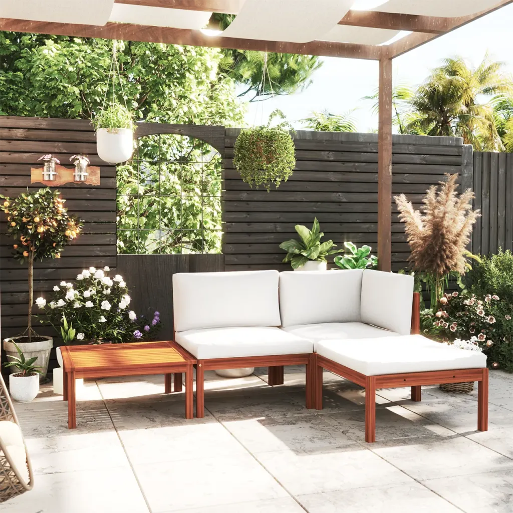 See 4-osaline akaatsiapuidust aiamööbli komplekt sobib hästi neile, kes soovivad luua õueruumi, mida saab kergesti ümber kujundada vastavalt vajadusele. Modulaarsed elemendid, köiest seljatoed ja pehmed padjad ühendavad endas mugavuse ja tagasihoidliku, kuid läbimõeldud välimuse, mis sulandub sujuvalt erinevatesse aedadesse ja terrassidele.