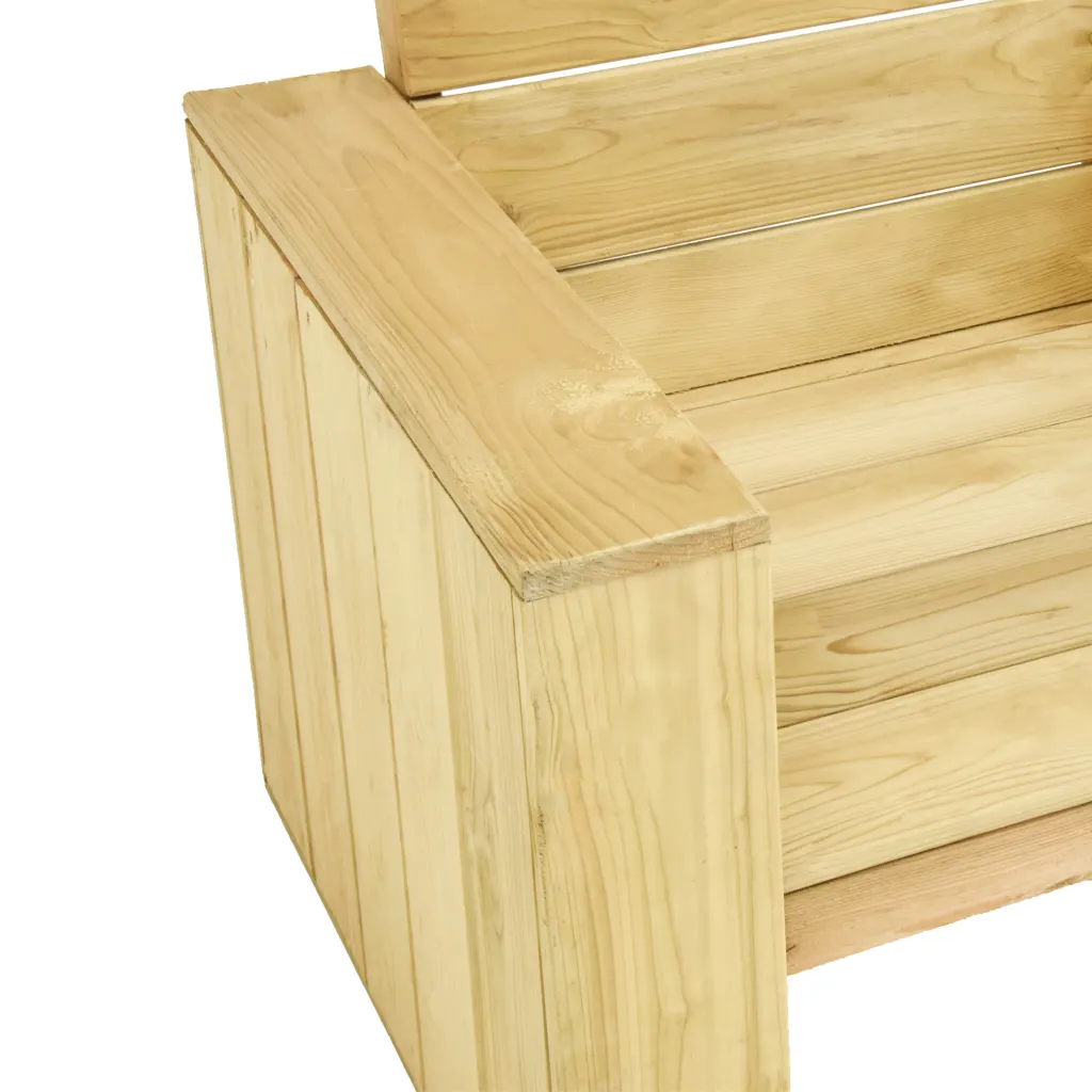See 4-osaline aiamööbli komplekt aitab luua mugava ja praktilise istumisnurga aeda, terrassile või rõdule. Komplekti kuuluvad tool, pink, nurgapink ja madal kohvilaud, mis sobivad hästi nii kohvipausiks kui ka rahulikuks õues lõõgastumiseks. Mööbel on valmistatud immutatud männipuidust, mis loob maalähedase ilme ja sobitub loodusliku väliskeskkonnaga.