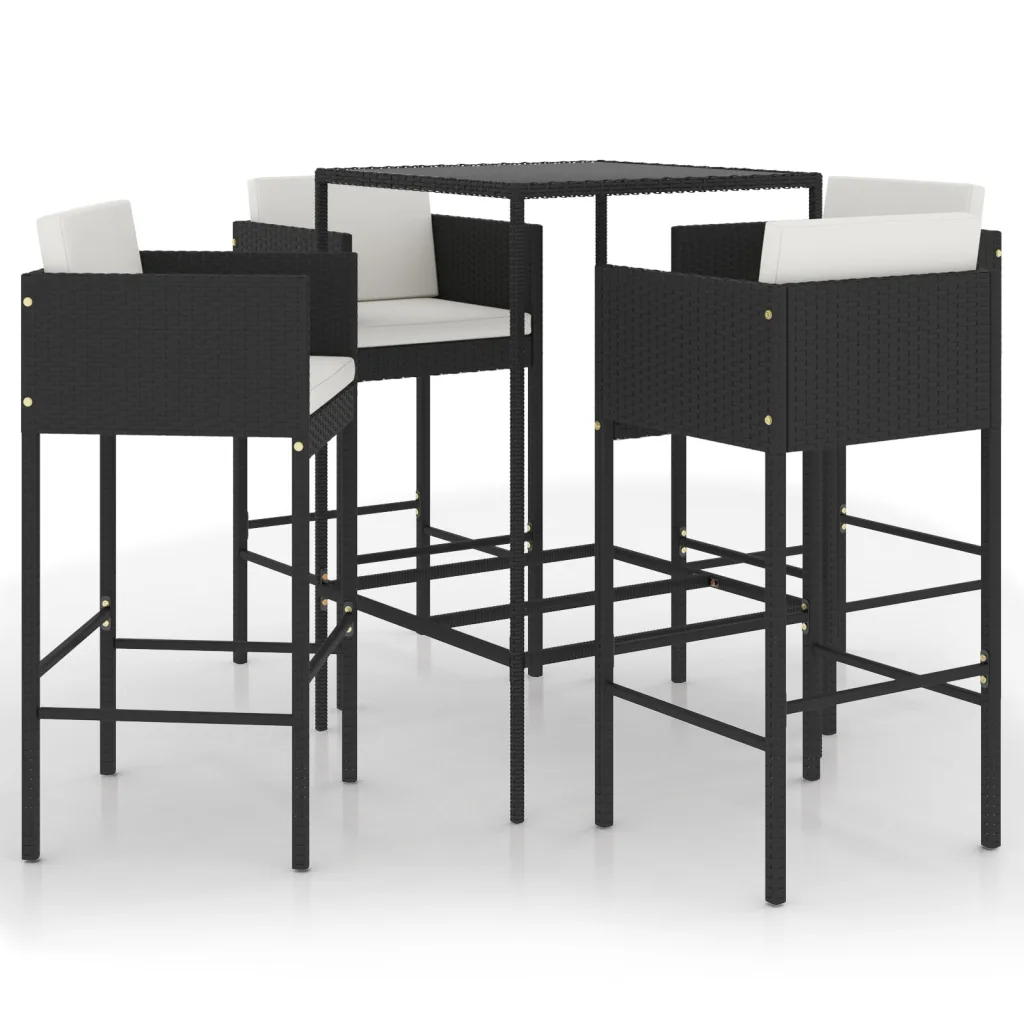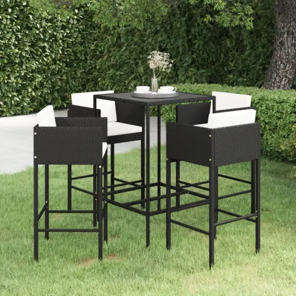 See 5-osaline aiabaari komplekt loob õueala, kus saab pere ja sõpradega mugavalt aega veeta. Mustast PE-rotangist baarilaud ja baaripukid on mõeldud igapäevaseks kasutamiseks ning sobivad hästi õues einestamiseks ja jookide serveerimiseks.