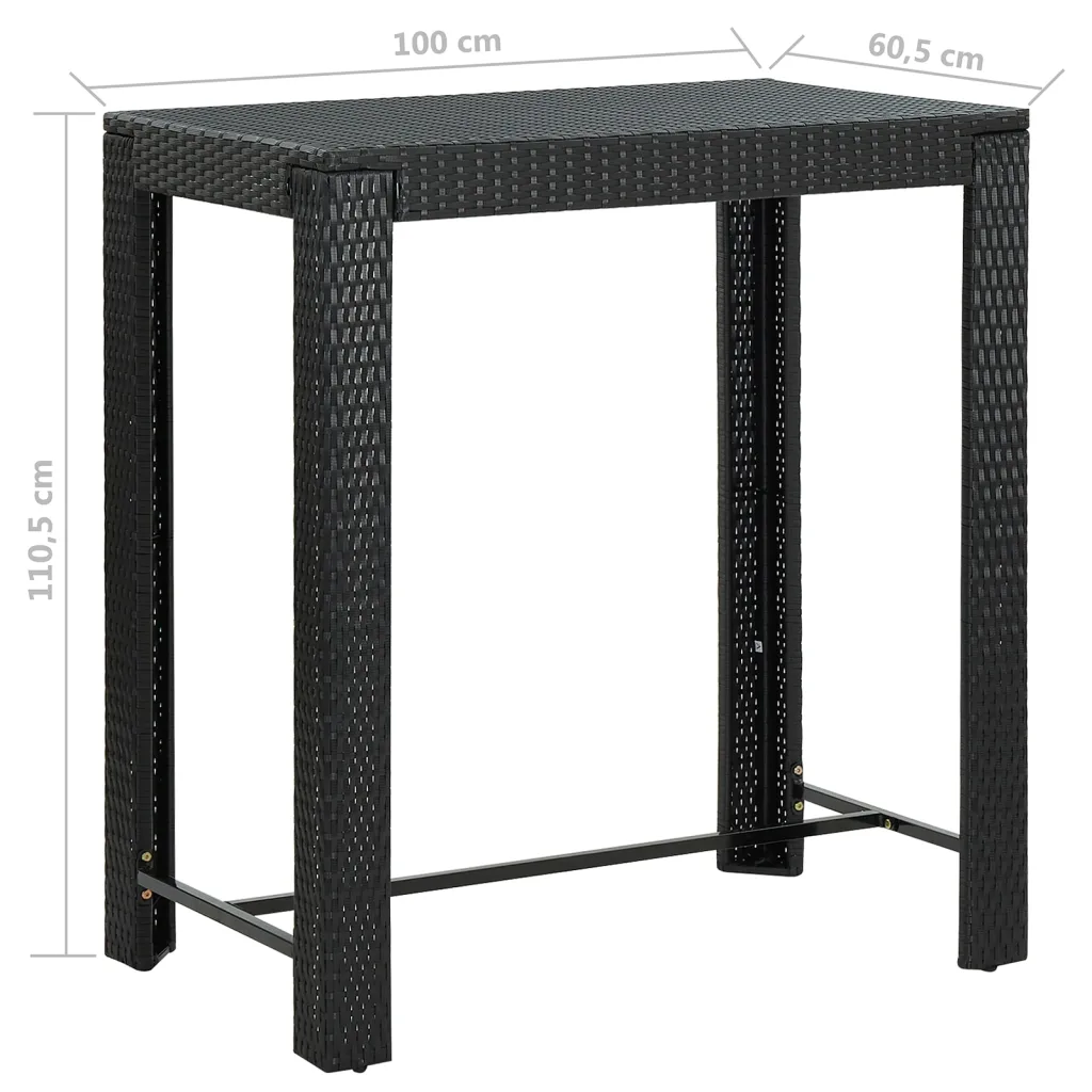 • 1 baarilaud mustast PE-rotangist, terasraamiga