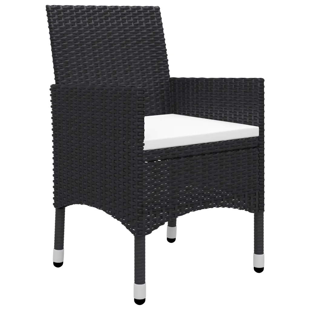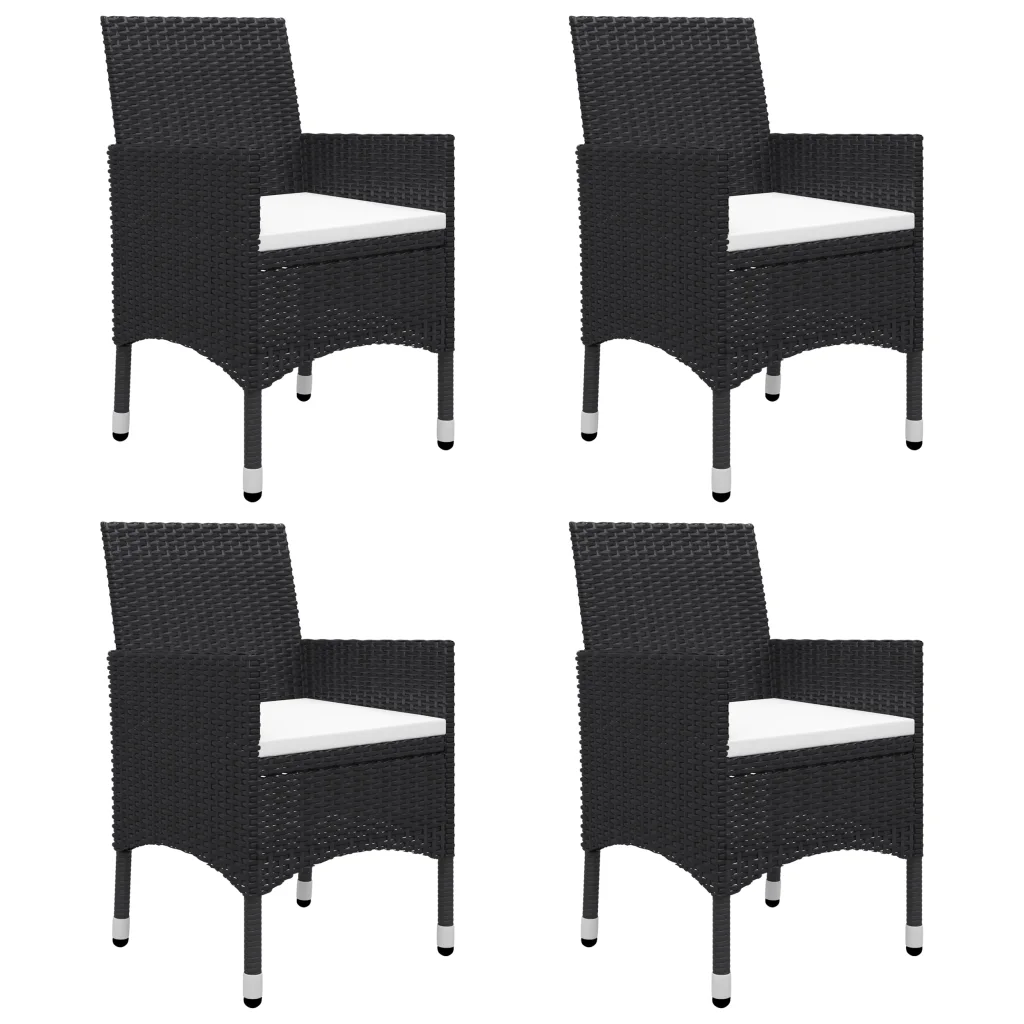 - 4 x söögitool musta värvi, PE-rotangist ja pulbervärvitud terasraamiga.