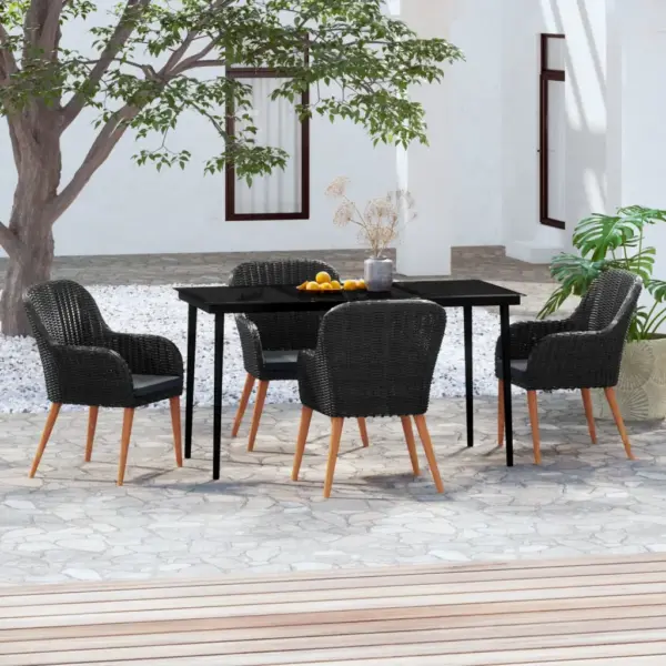 5-osaline aiamööbli komplekt loob ühtse söögiala teie aias või terrassil. Vastupidavast polürotangist ja pulbervärvitud terasest valmistatud laud ja toolid sobivad igapäevaseks kasutamiseks välitingimustes, tumehallid istmepadjad lisavad istumismugavust ning klaasist lauaplaat pakub stabiilse pinna einetele ja jookidele.