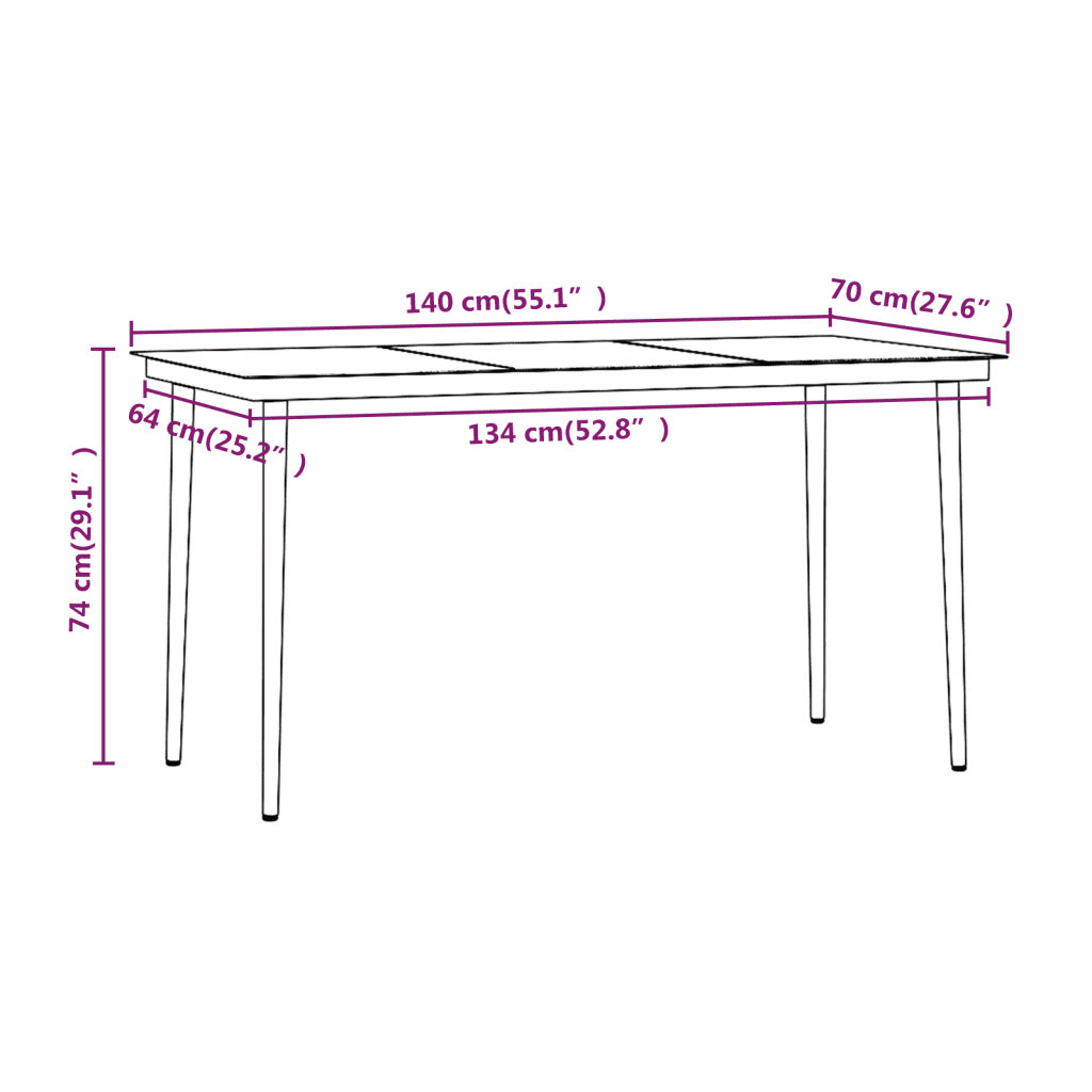 - Mugavad mõõdud: laud 140 x 70 x 74 cm ja tool 56 x 60 x 81,5 cm, istme kõrgus 41 cm ja käetoe kõrgus 61 cm tagavad toetava istumisasendi.