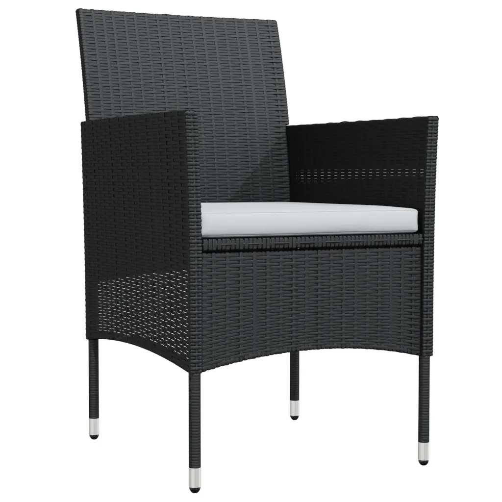 See 5-osaline aiamööbli komplekt on loodud terrassil või aias einestamiseks ja lõõgastumiseks. Mustast PE-rotangist toolid, pulbervärvitud terasraamid ja klaasist lauaplaat moodustavad stiilse ning igapäevaseks välitingimustes kasutamiseks sobiva lahenduse, mis on samal ajal lihtsasti hooldatav.