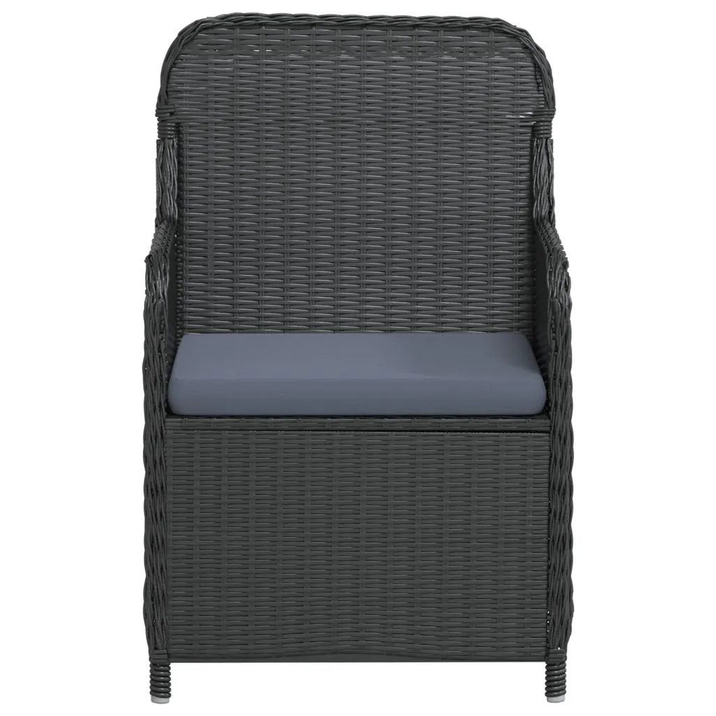 See 5-osaline aiamööbli komplekt patjadega loob funktsionaalse ja hubase söögiala aeda, terrassile või siseõuele. Must polürotang ja pulbervärvitud terasraamid tagavad vastupidavuse ning sobivuse igapäevaseks välitingimustes kasutamiseks, samal ajal kui tumehallid istmepadjad pakuvad lisamugavust pikemateks istumisteks.