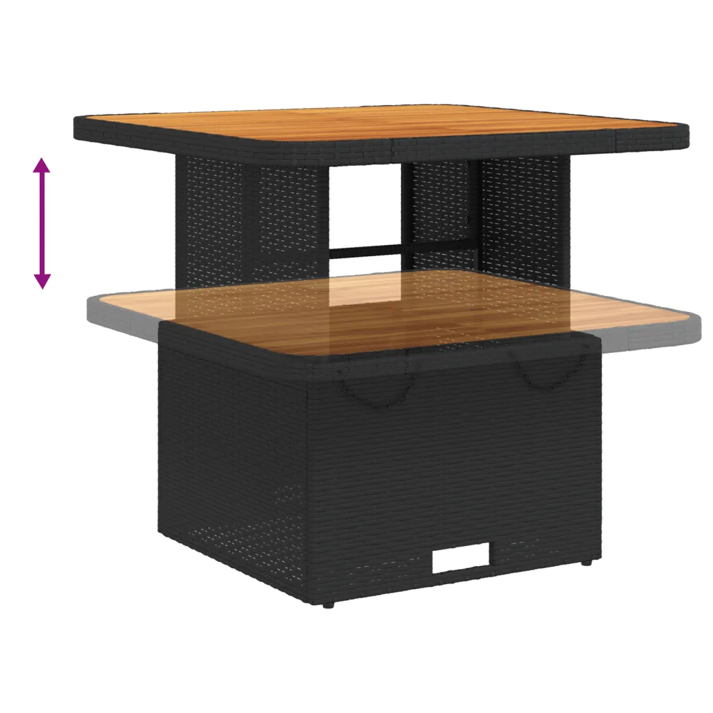 - 1 x aialaud mõõtmetega 80 x 80 x 40/71 cm musta polürotangist raamiga ja pruunist akaatsiapuidust lauaplaadiga