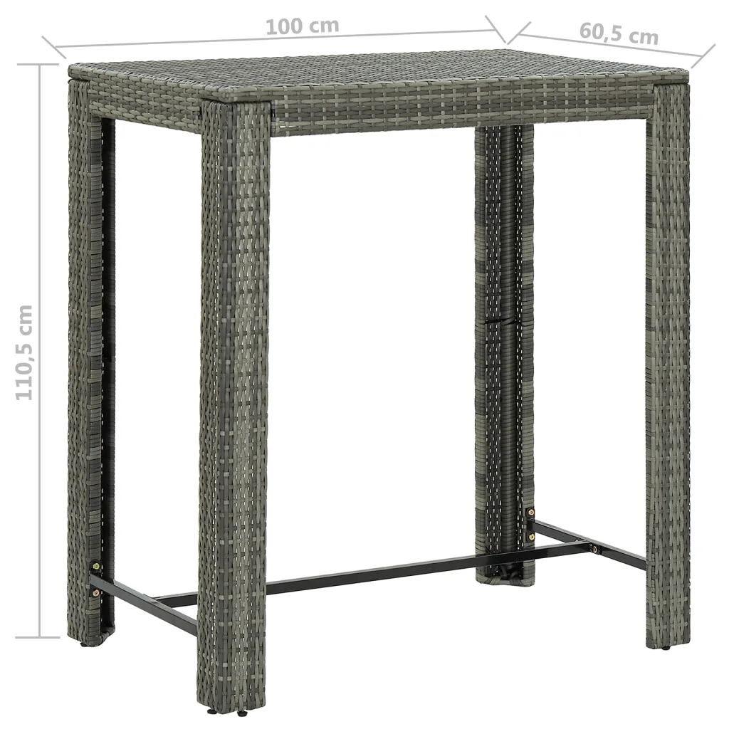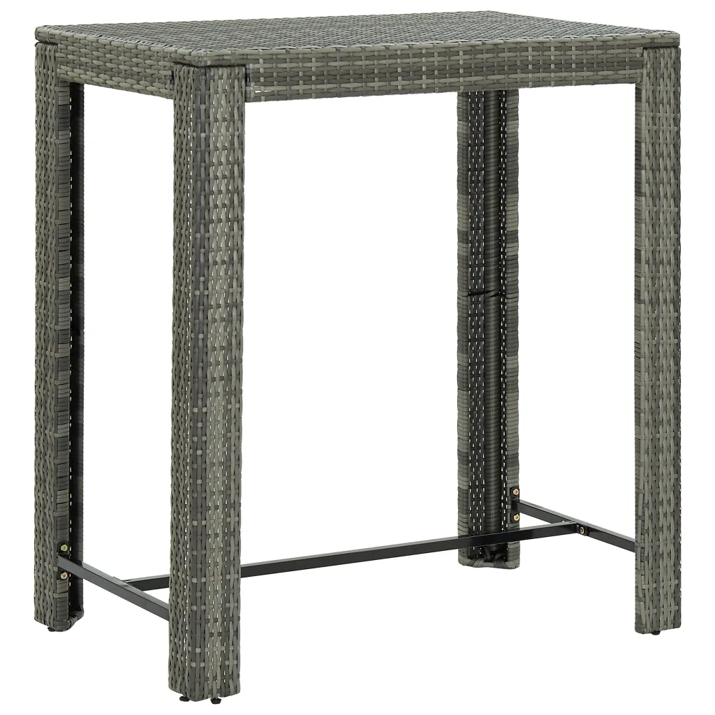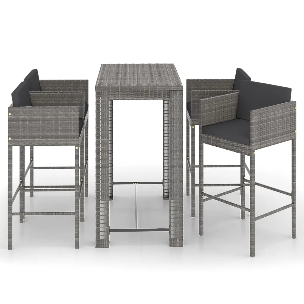 See 5-osaline aia baarikomplekt loob hubase koha, kus pere ja sõpradega õues aega veeta. Hallist ilmastiku- ja veekindlast PE-rotangist ning vastupidavast pulbervärvitud terasraamist valmistatud baarilaud ja neli baaripukki sobivad hästi igapäevaseks välikasutuseks. Komplekti kuuluvad istme- ja seljatoepadjad muudavad istumise mugavaks ning kompaktne suurus sobib ka väiksemale terrassile.