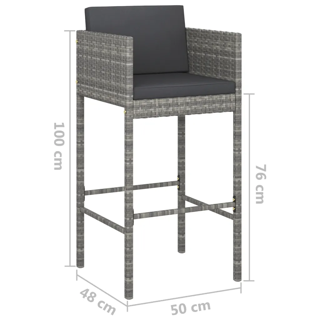 Kui otsid ruumisäästlikku ja ühtse stiiliga lahendust terrassi või aia baarnurga loomiseks, pakub see komplekt praktilise ja mugava lahenduse. Vastupidavad materjalid ja ajatu hall värv tagavad, et komplekt sobib erinevatesse väliruumidesse ning peab hästi vastu igapäevasele kasutusele. Istme- ja seljatoepadjad lisavad istumismugavust, et saaksid rahulikult nautida hommikukohvi, õhtuseid jooke või väliõhtusööke.