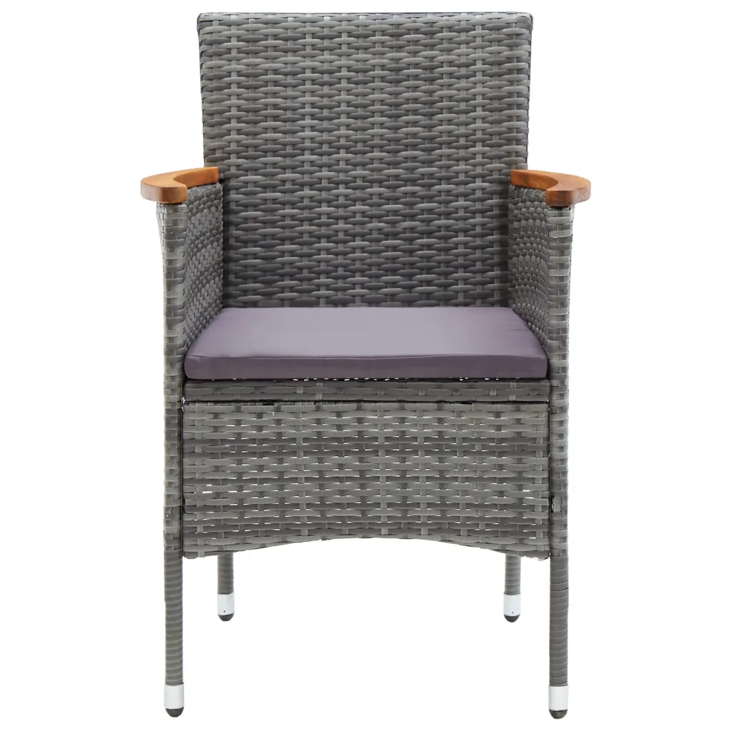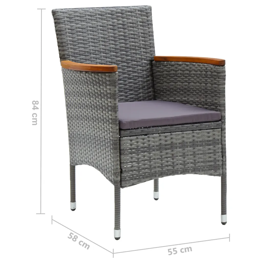See 5-osaline hall aiamööbli komplekt aitab luua aeda, terrassile või rõdule funktsionaalse ja ühtse söögiala. Õliviimistlusega akaatsiapuidust laud on stabiilne ja vastupidav, samas kui hallist PE-rotangist aiatoolid koos tumehallide istmepatjadega pakuvad igapäevaseks kasutuseks vajalikku mugavust.