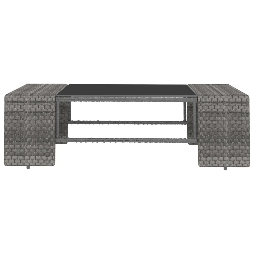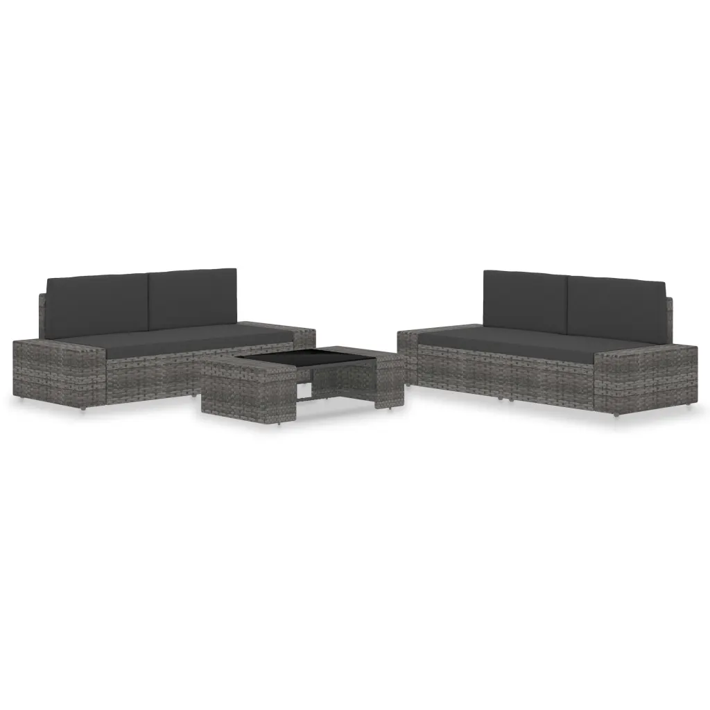 See 5-osaline polürotangist aiamööbli komplekt loob aeda või terrassile mugava istumisala, kus pere ja sõbrad saavad mõnusalt aega veeta. Ilmastikukindlast PE-rotangist valmistatud elemendid on lihtsasti hooldatavad ning tugev pulbervärvitud terasraam tagab hea vastupidavuse igapäevasel kasutamisel. Komplekti moodustavad nurgadiivanid ja madal klaasplaadiga laud, mida saab tänu modulaarsele ülesehitusele paigutada vastavalt ruumile ja vajadustele.