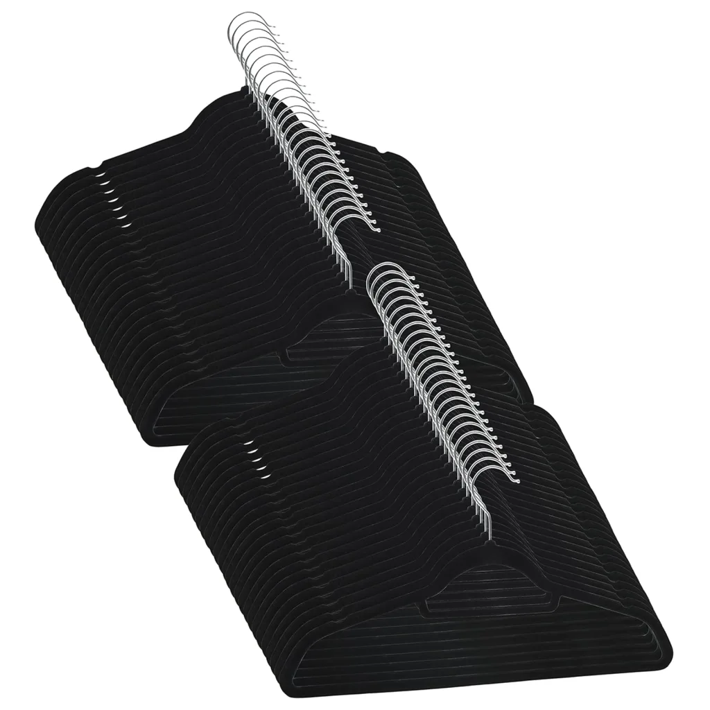 Kui soovid vähendada rõivaste kortsumist ja libisemist ning kasutada olemasolevat kapi ruumi võimalikult tõhusalt, on need sametkattega riidepuud praktiline lahendus. Õhuke, kuid tugev konstruktsioon, libisemiskindlad sooned ja pükstelatt teevad komplektist sobiva valiku nii igapäevariiete kui ka õrnemate esemete korrastatud hoiustamiseks.