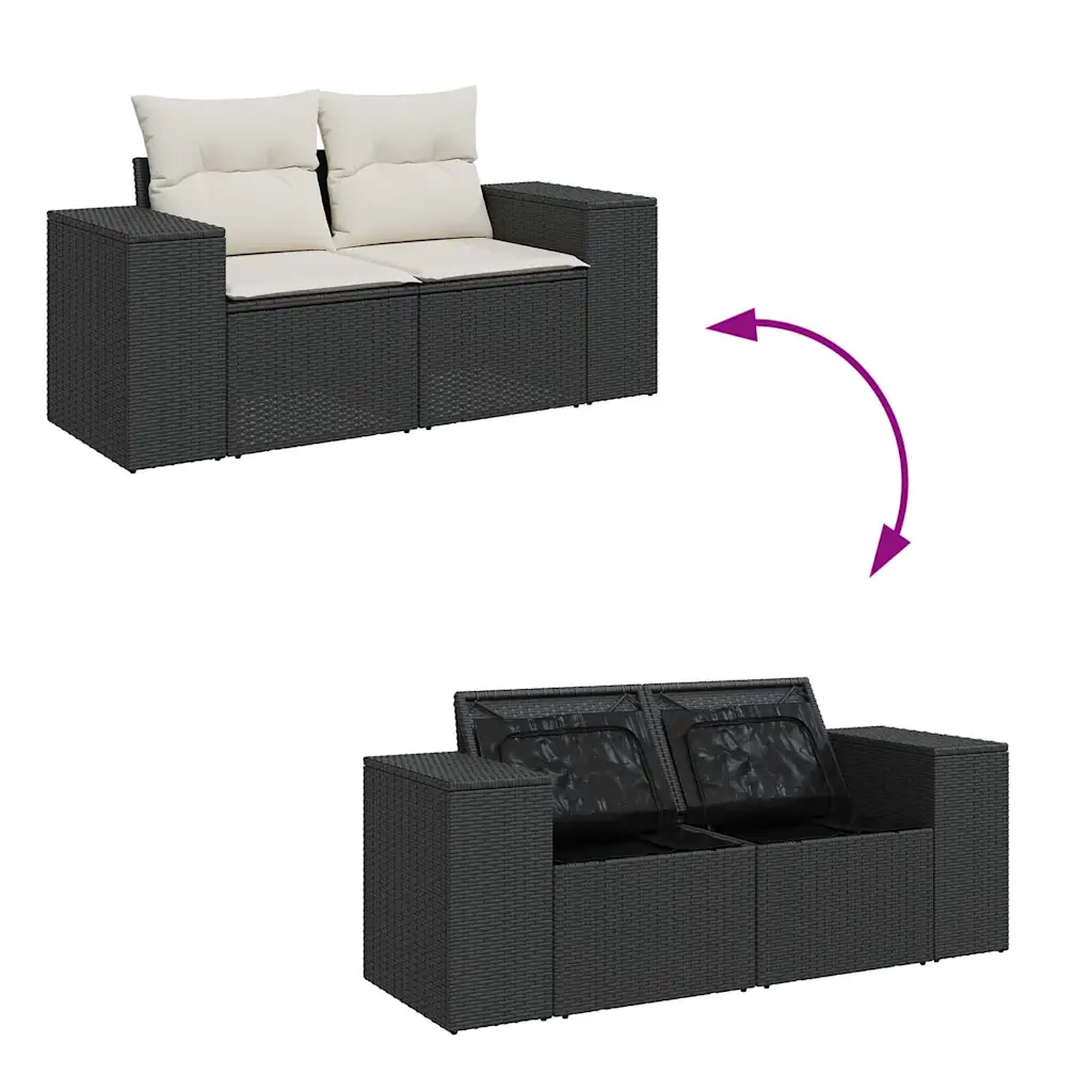 See komplekt sobib, kui vajad kompaktset ja korrastatud istumisala, kus padjad ja tarvikud ei jää laokile. Panipaigaga istmed ja veekindlad sisekotid teevad terrassi korrastamise lihtsaks ning kreemvalged padjad lisavad visuaalset pehmust mustale polürotangile. Kui otsid modulaarset aiamööblit, mis ühendab mugava istumise, hoiustamise ja vastupidava materjali, on see diivanikomplekt praktiline valik sinu aeda või rõdule.