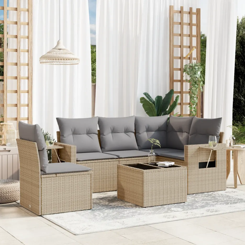 See moodne aiadiivani komplekt aitab luua mugava ja kutsuva istumisala teie aeda, terrassile või rõdule. Beežist polürotangist punutis ja helehallid padjad sobituvad kergesti eri stiilis õueruumidega, pakkudes samal ajal mugavat kohta, kus pere või sõpradega aega veeta ja lõõgastuda.