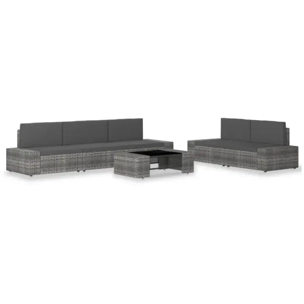 See 6-osaline polürotangist aiamööbli komplekt loob hubase istumisnurga aeda, terrassile või rõdule. Ilmastikukindel punutud polürotang ja pulbervärvitud terasraam tagavad vastupidavuse igapäevases kasutuses, paksud istme- ja seljatoepadjad pakuvad mugavat lõõgastumisvõimalust perele ja sõpradele.