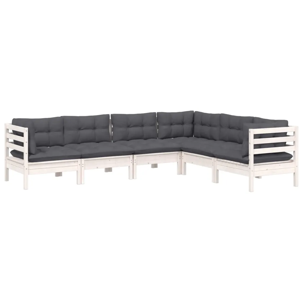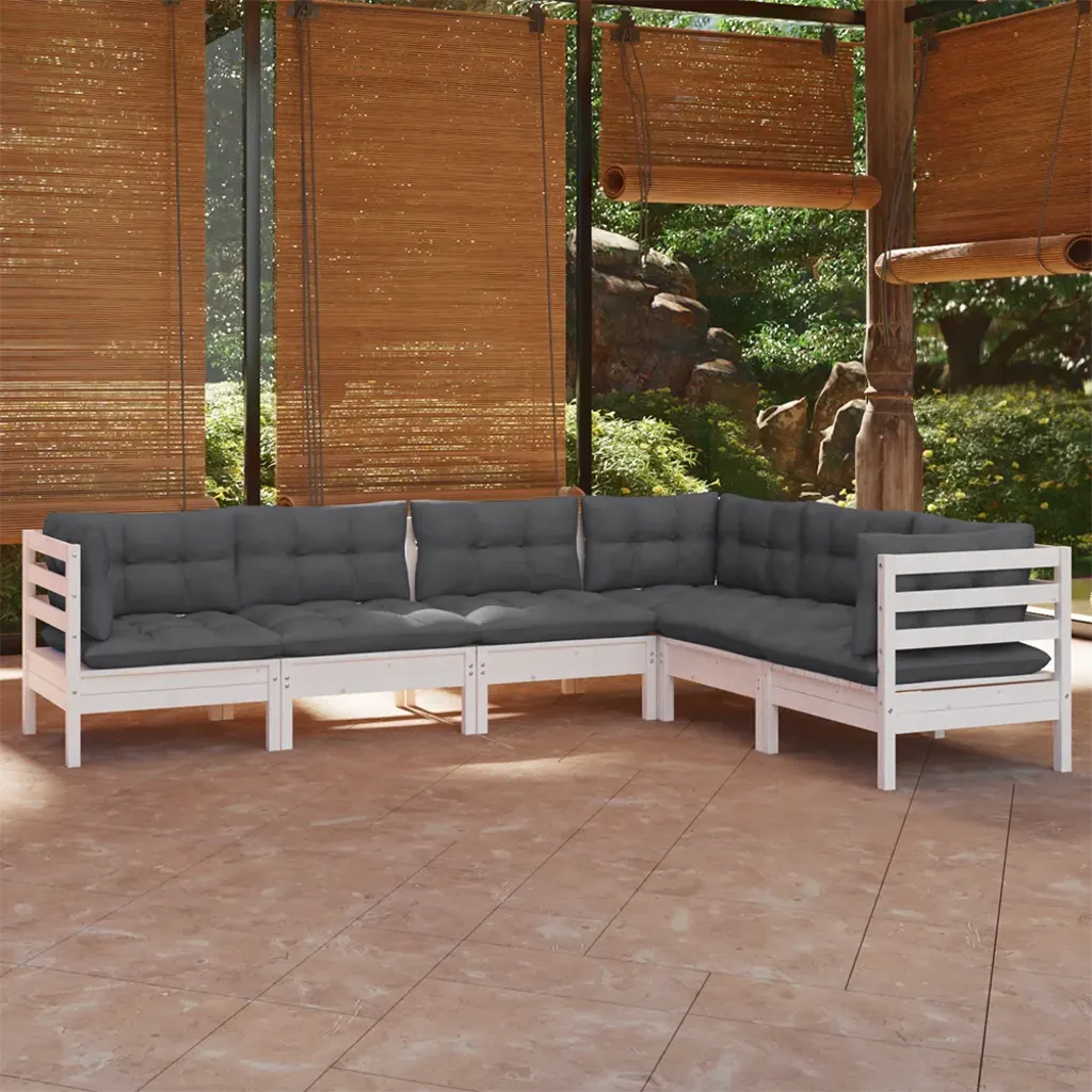 See 6-osaline aiadiivanikomplekt aitab luua aeda või terrassile hubase puhkenurga, kus on mõnus istuda ja aega veeta. Komplekt on valmistatud valgest männipuidust, mis annab õuele helge ilme ja tagab stabiilse konstruktsiooni. Pehmed antratsiithallid iste- ja seljapadjad muudavad istumise mugavaks nii lühemaks puhkepausiks kui pikemaks ajaveetmiseks.