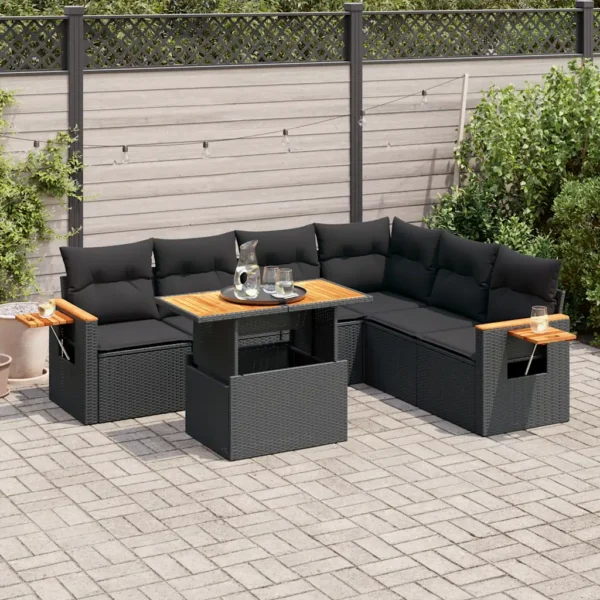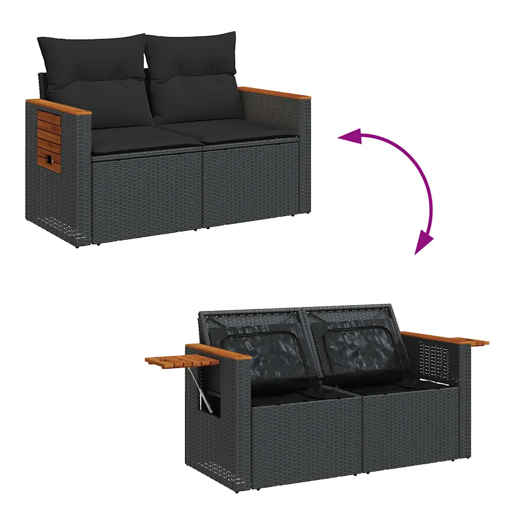 See 7-osaline aiadiivani komplekt loob hubase istumisala aeda, hoovi või terrassile, kus saab pere ja sõpradega vestelda või rahulikult lõõgastuda. UV-kindlast polürotangist ja akaatsiapuidust detailidega moodulid on ilmastikukindlad ning vähest hooldust nõudvad. Istmete alla peidetud panipaigad veekindlate kottidega aitavad hoida padjad ja muud esemed kuivad ja korrastatult.