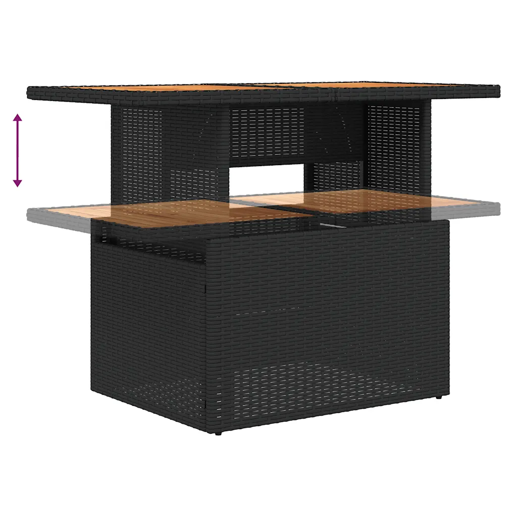 - 1 x aialaud – PE-rotangist ja pulbervärvitud terasraamiga laud akaatsiapuidust lauaplaadiga, mõõtmed 100 x 55 x 44/73 cm (P x L x K).