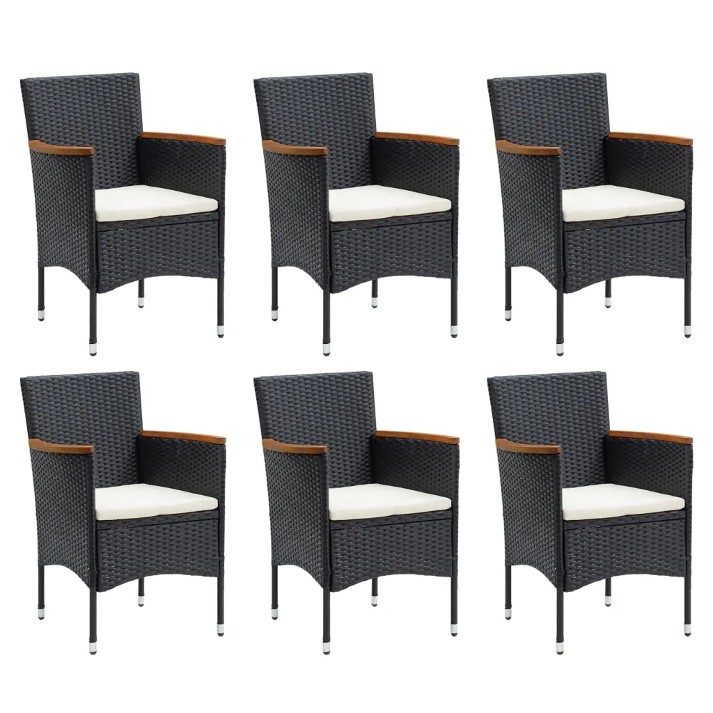 - 6 x tooli musta PE-rotangi, pulbervärvitud terasraami ja akaatsiapuust käetugedega