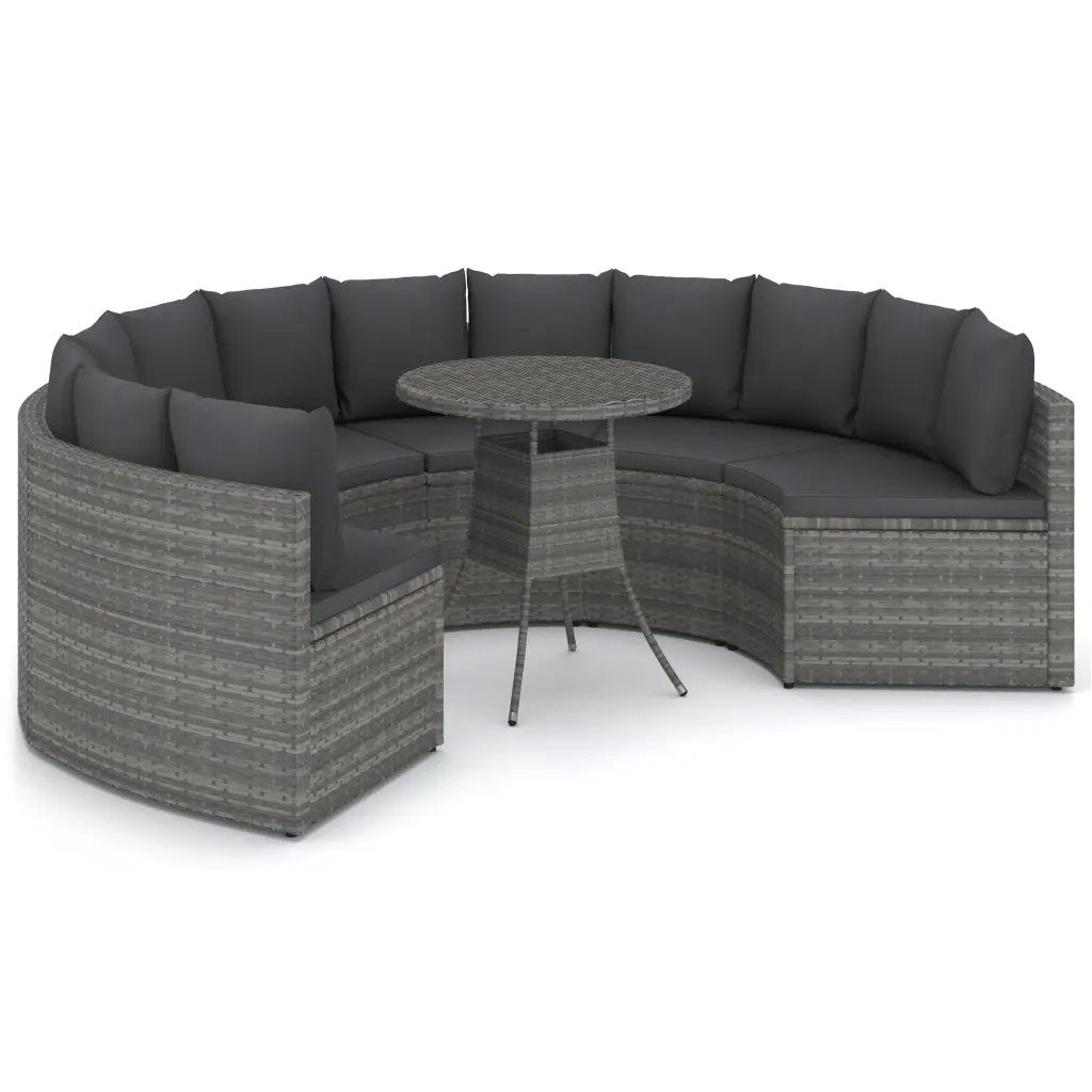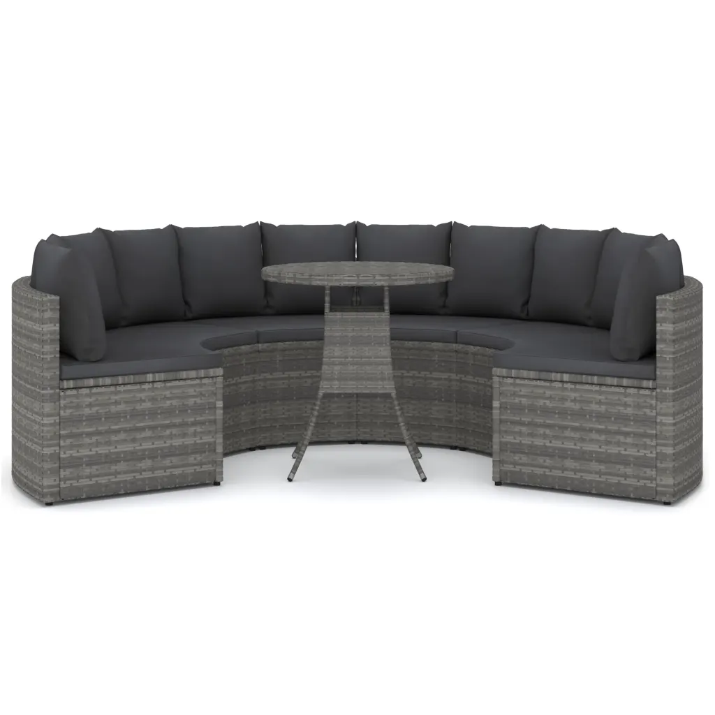 See 7-osaline aiadiivanikomplekt aitab luua aeda või terrassile praktilise puhkenurga, kus on mõnus aega veeta. Hallist PE-rotangist ja pulbervärvitud terasraamist valmistatud mööbel sobib kasutamiseks õues ning tumehallid istme- ja seljatoepadjad muudavad istumise mugavaks. Tänu kergelt liigutatavale konstruktsioonile ja reguleeritavatele jalgadele on komplekti lihtne vastavalt ruumile paigutada.