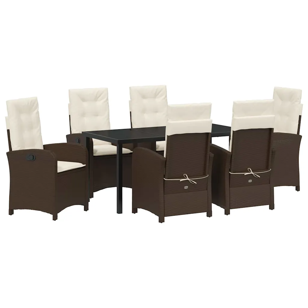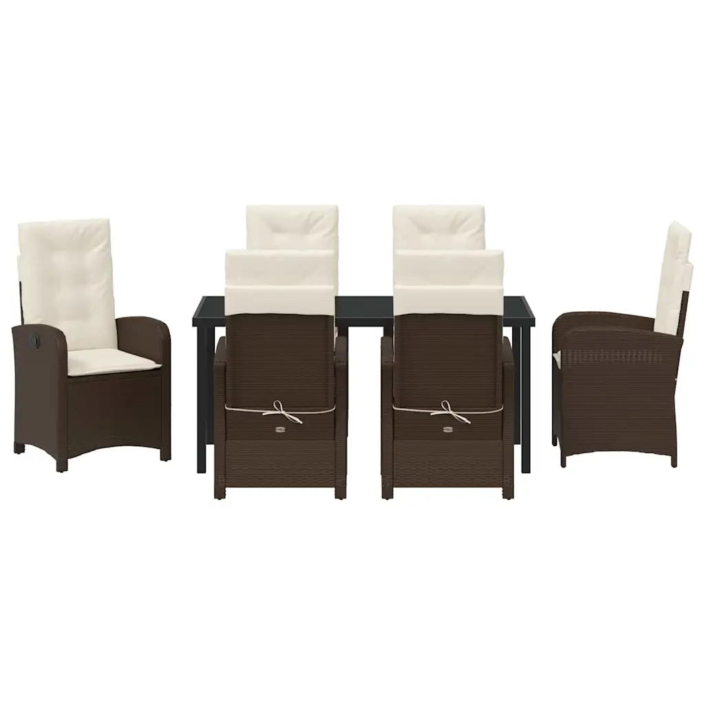 See 7-osaline pruunist polürotangist aiamööbli komplekt loob sinu aias või terrassil eraldi söögiala, kus kuni kuus inimest saab mugavalt einestada ja aega veeta. Kaasaegne disain, kõrge seljatoega toolid ja pehmed padjad pakuvad head istumismugavust, samal ajal kui tugev konstruktsioon tagab stabiilsuse ja sobivuse igapäevaseks kasutamiseks õues.