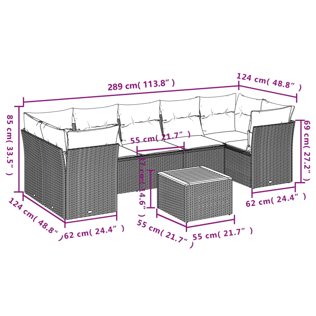 See 8-osaline modulaarne aiadiivani komplekt sobib hästi neile, kes otsivad praktilist ja vähe hooldust nõudvat lahendust mugava istumisala loomiseks õue. UV-kindel polürotang, tugev terasraam ja naturaalsest akaatsiapuidust lauaplaat ühendavad vastupidavuse ning ajatu välimuse, samas kui pehmed padjad ja paindlik paigutus võimaldavad väliruumi hõlpsalt oma vajaduste järgi kujundada.