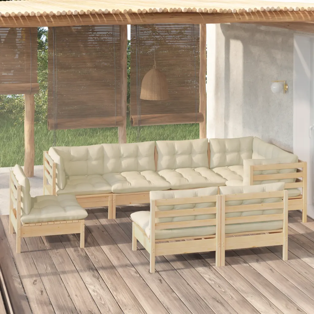 Miks valida 8-osaline männipuidust aiamööbli komplekt kreemjate patjadega?