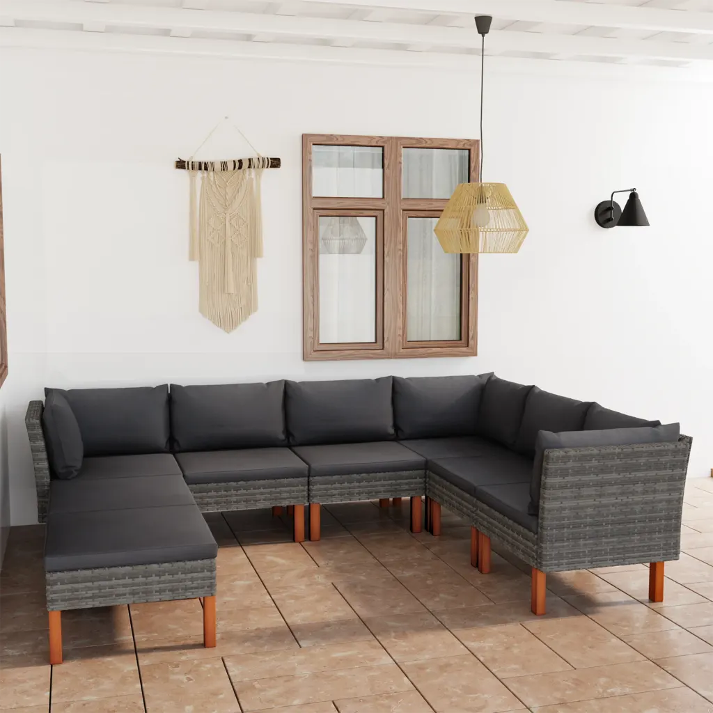 Hubane istumisnurk terrassile – 8-osaline polürotangist aiamööbli komplekt patjadega