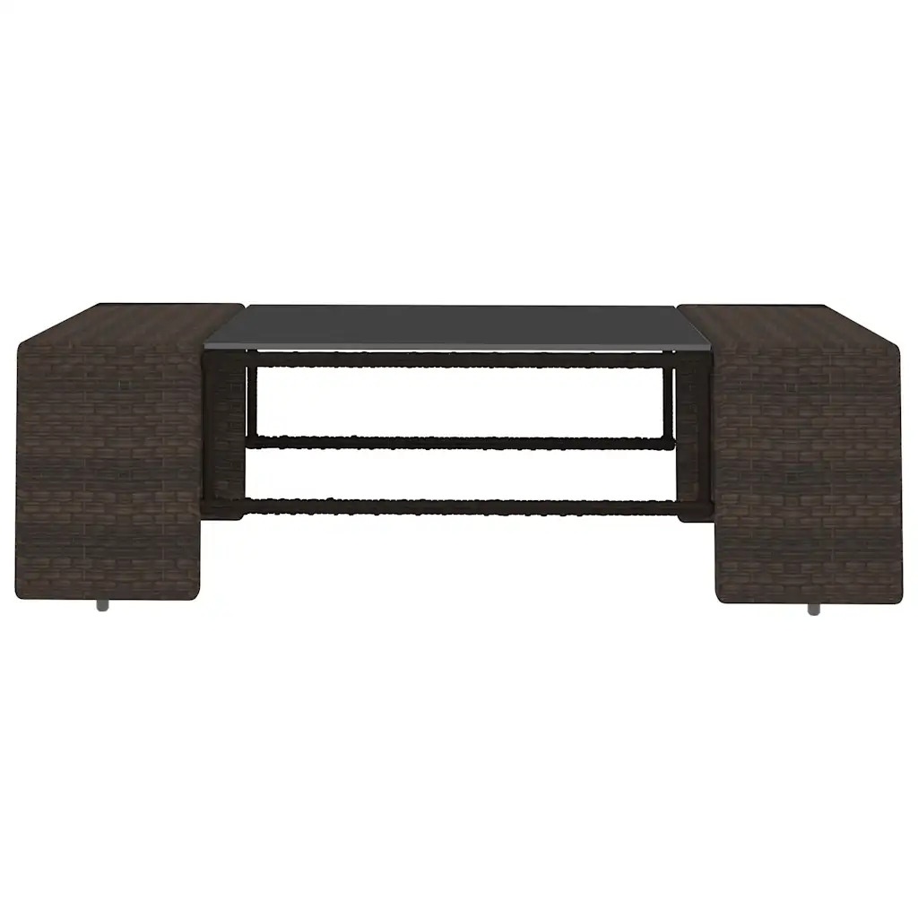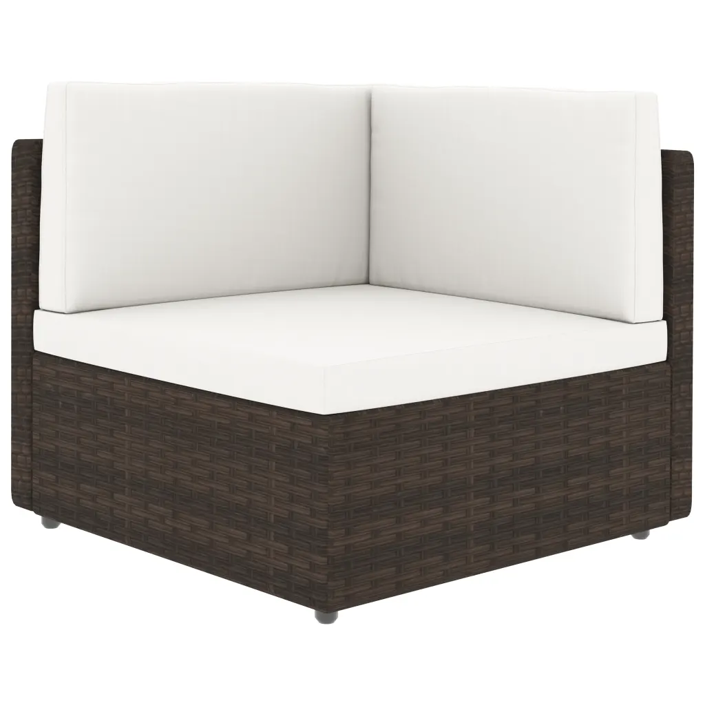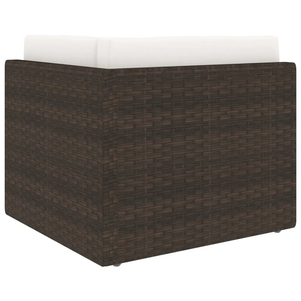 See 8-osaline pruun aiamööbli komplekt patjadega loob suure ja madala nurgadiivaniala terrassile või aeda. Ilmastikukindel polürotang, tugev pulbervärvitud terasraam ja karastatud klaasist kohvilaud tagavad vastupidavuse, samal ajal kui kreemjasvalged istme- ja seljatoepadjad pakuvad mugavat istekohta pere ja sõpradega õues aja veetmiseks.