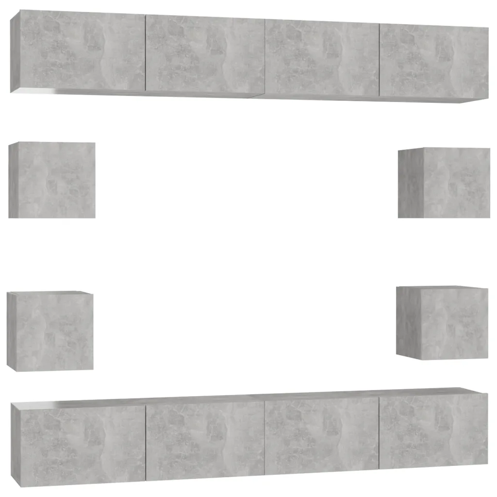 See 8-osaline seinale paigaldatav telerikappide komplekt aitab hoida elutoa meediakeskuse korras ja ühtse stiiliga. Betoonhalli viimistluse ja puitlaastplaadist konstruktsiooniga kapid pakuvad rohkelt hoiuruumi raamatute, ajakirjade, DVD-de ja muude esemete jaoks ning moodustavad ajatult modernse TV-seina.