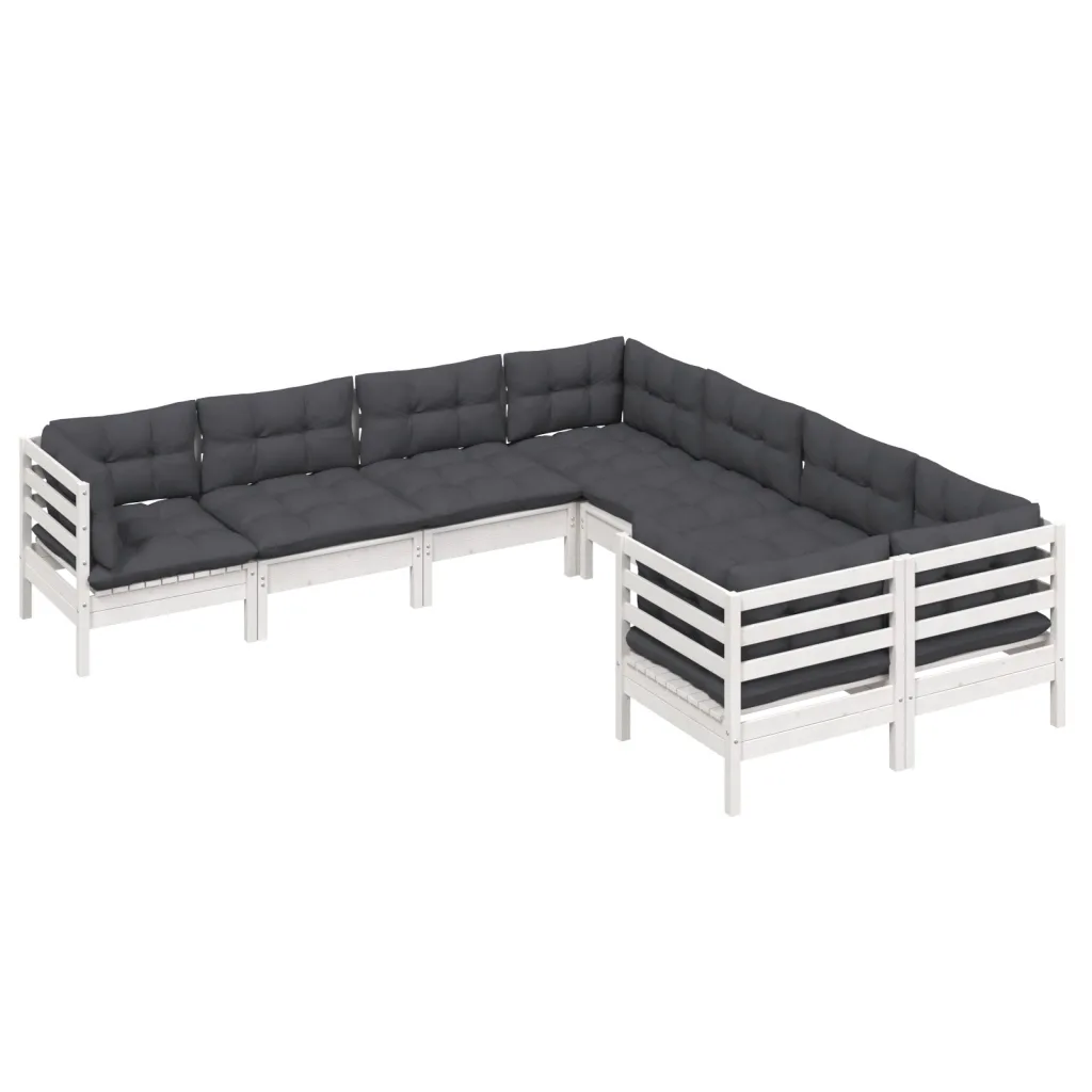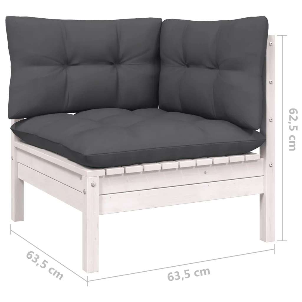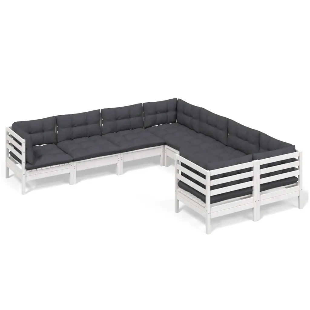 See 8-osaline aiamööbli komplekt loob terrassile või aeda hubase istumisala, kus puhata, ilma nautida ja lähedastega aega veeta. Valge täismännipuidust raam ja antratsiithallid padjad moodustavad neutraalse koosluse, mida saab kergesti sobitada erinevate väliruumide stiiliga. Modulaarne aiadiivanikomplekt võimaldab elemente vastavalt vajadusele ümber tõsta ja kombineerida.