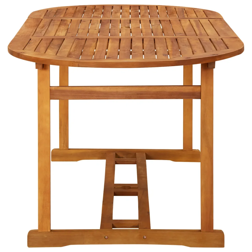 See 9-osaline akaatsiapuidust aiamööbli komplekt loob aias või terrassil ühtse söögiala kuni kaheksale inimesele. Tugevast õliviimistlusega akaatsiapuidust laud ja toolid on mõeldud kasutamiseks välitingimustes ning pruun toon sobib erinevate aedade kujundusega. Toolid saab kompaktselt kokku klappida, kui vajad rohkem ruumi või hooajavälist hoiustamist.
