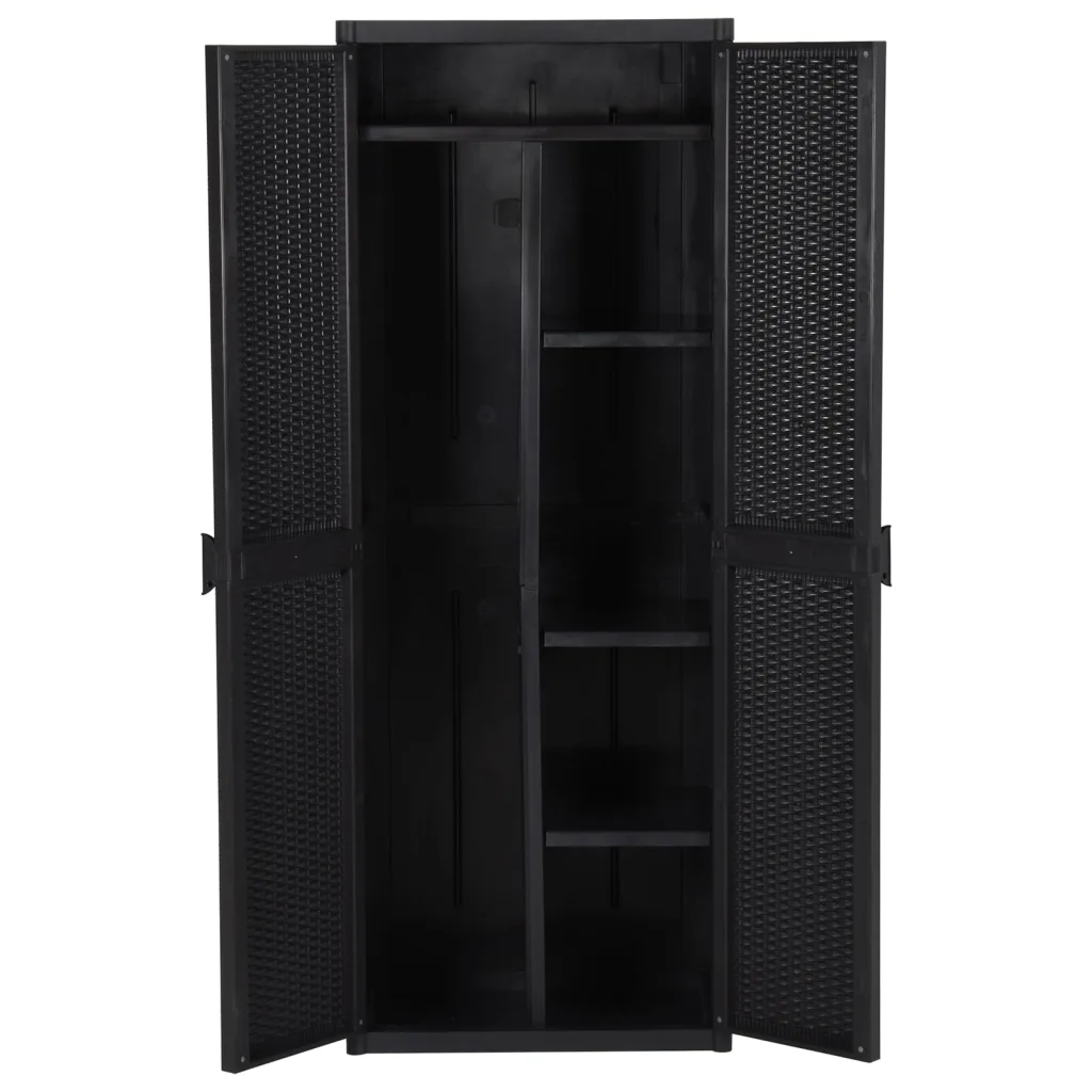 Kui soovid hoida aiatööriistu, puhastusvahendeid ja muid tarvikuid ühes konkreetses kohas, on see harjahoidja ja nelja riiuliga aia hoiukapp praktiline valik. Vastupidavast polüpropüleenist rotangiefektiga pind sobitub erinevatesse keskkondadesse ning lihtsustab korrastamist nii aias kui ka siseruumides. Valides selle kapi, saad funktsionaalse ja hõlpsasti hooldatava hoiulahenduse oma kodu või aia jaoks.
