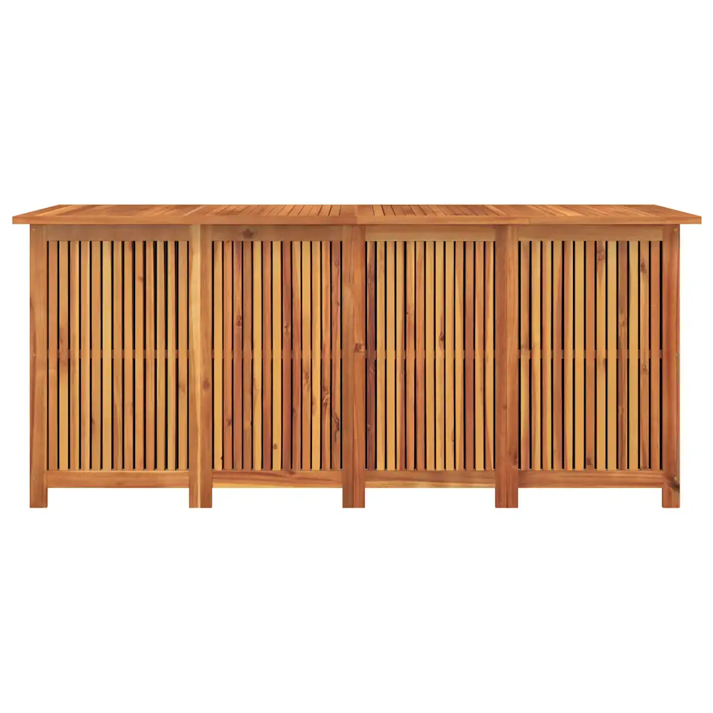 See akaatsiapuidust aia hoiukast aitab hoida terrassi, rõdu või aianurga alati korras. Ruumikas kast sobib patjade ja tekkide hoiustamiseks ning muudab aiamööbli tarvikud lihtsasti kättesaadavaks. Tänu mõõtudele 200 x 80 x 75 cm saab seda kasutada nii õues kui ka siseruumides, kui on vaja rohkem diskreetset hoiuruumi.