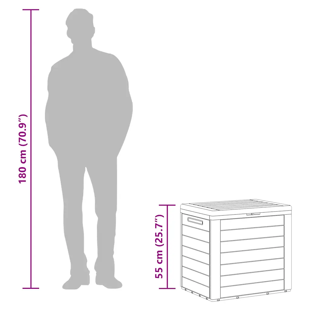 - Praktilised käepidemed – integreeritud käepidemed muudavad hoiukasti liigutamise terrassil või aias lihtsamaks.