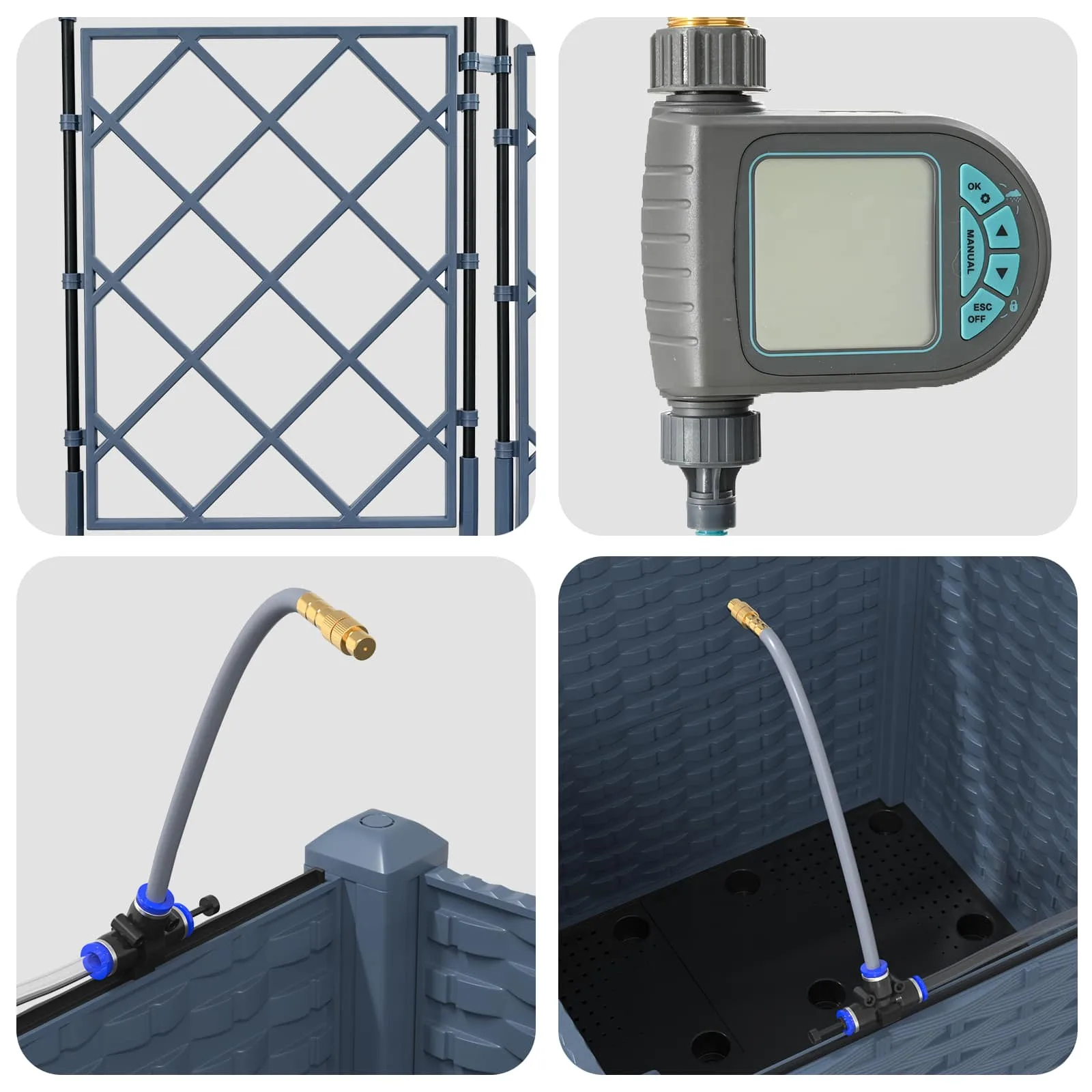 - Integreeritud kastmissüsteem – komplektis olev vee kastmissüsteem aitab hoida mulla ühtlaselt niiskena, vähendades kastmissagedust ja toetades taimede tervet kasvu.