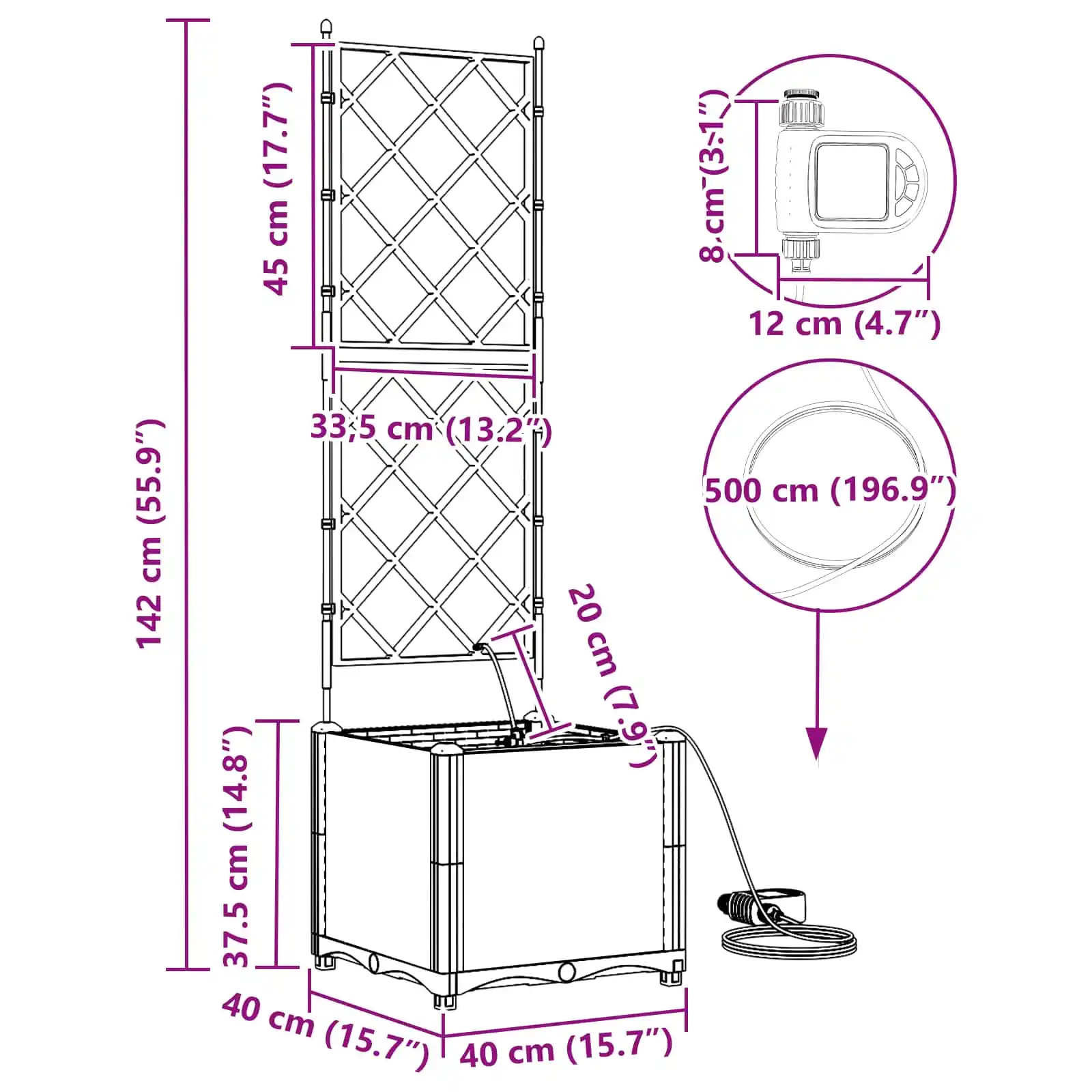 Kui soovid luua vertikaalset haljastust ja saada samal ajal vastupidava ning lihtsasti hooldatava lahenduse, on see terasest istutuskast praktiline valik. Integreeritud kastmissüsteem, kõrgem konstruktsioon ja ilmastikukindel materjal muudavad ronitaimede kasvatamise hõlpsaks nii algajale kui kogenud aednikule.